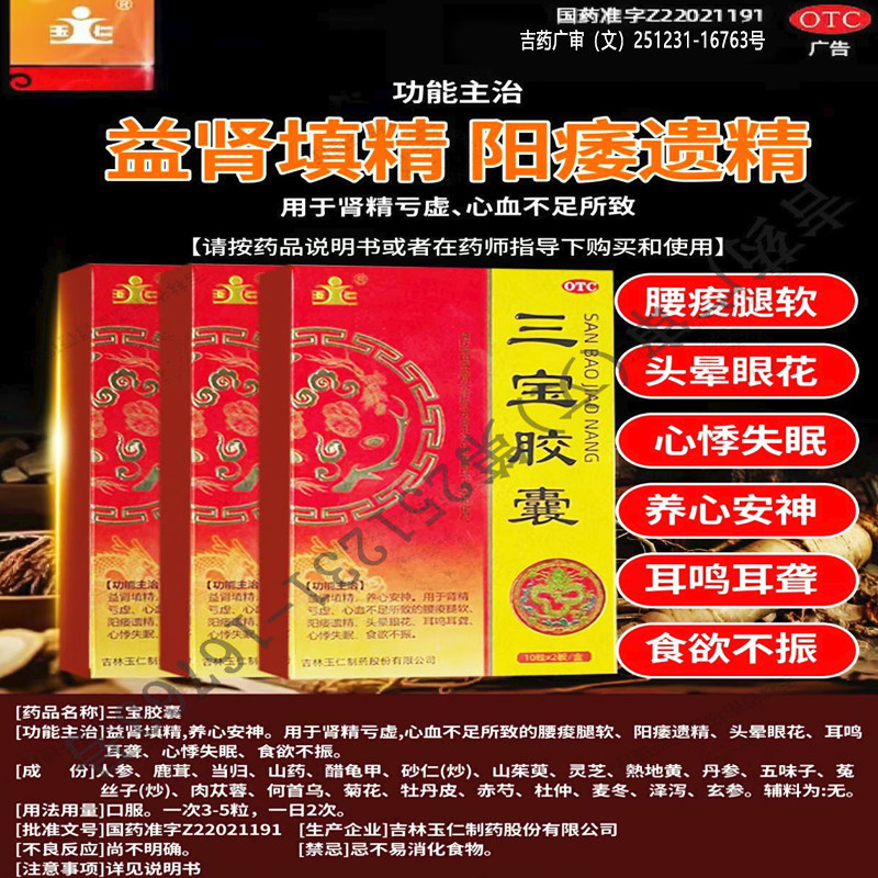三宝胶囊正品益肾填精养心安神阳痿遗精心悸失眠男用中药调理