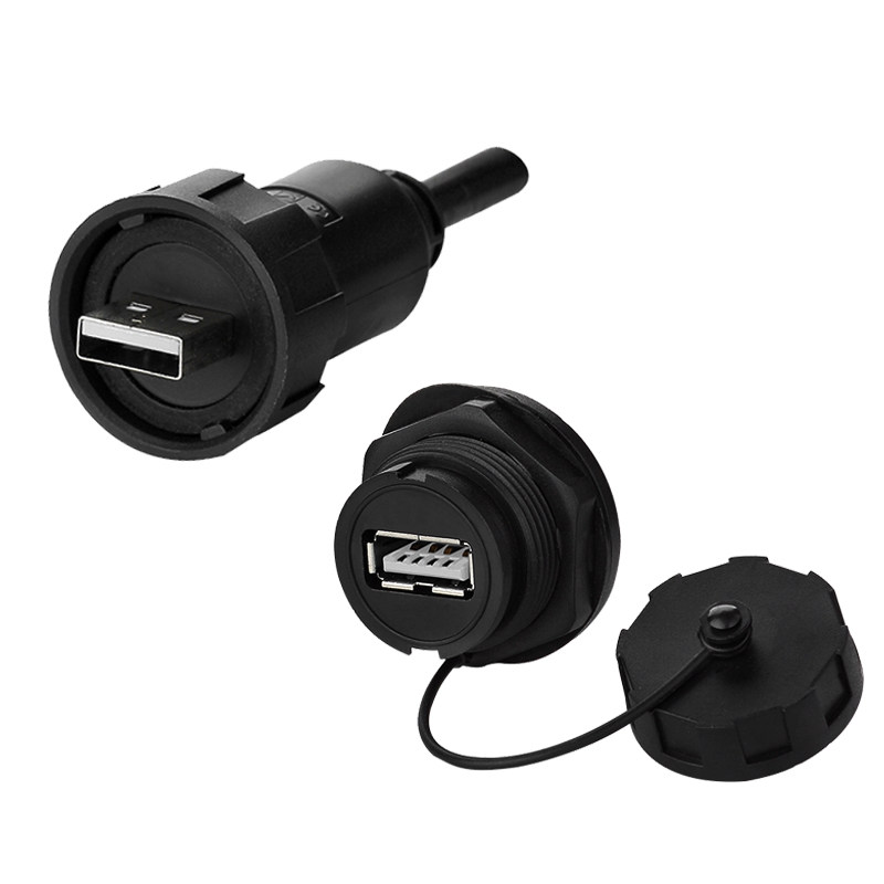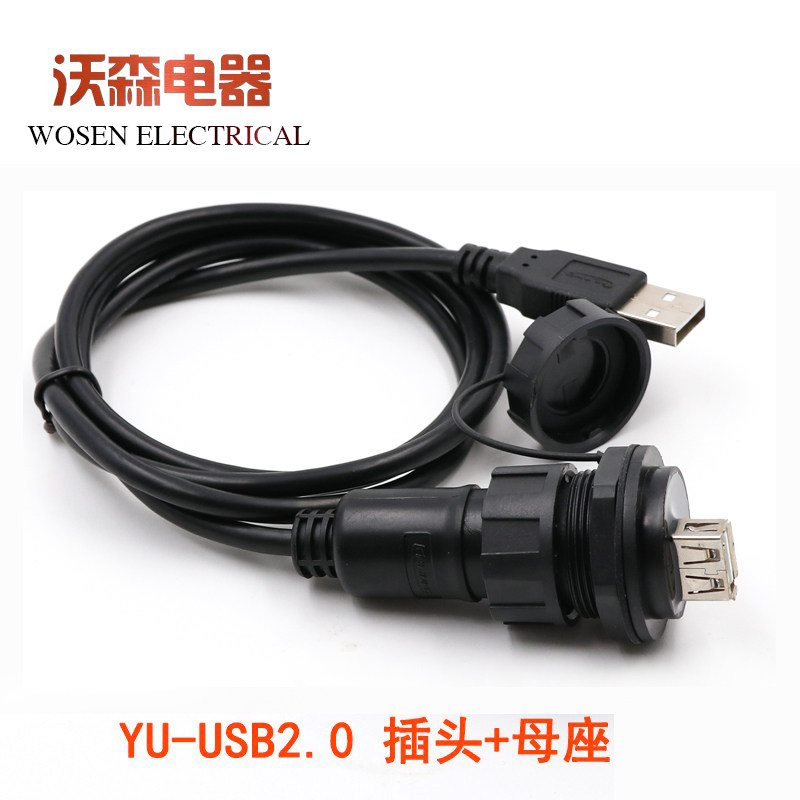 凌科航空插头YU防水连接器USB2.0插座母座工业USB延长线公母对接