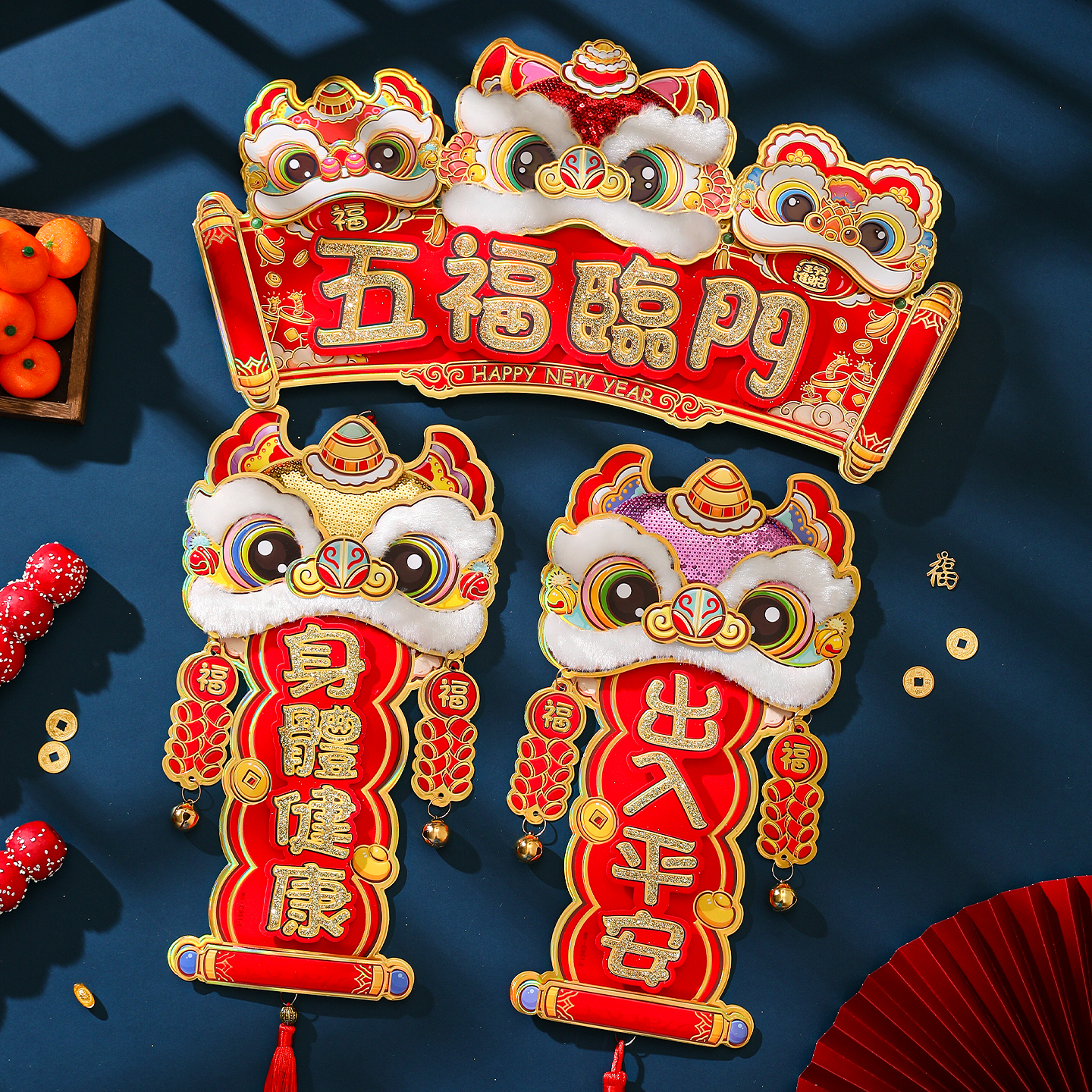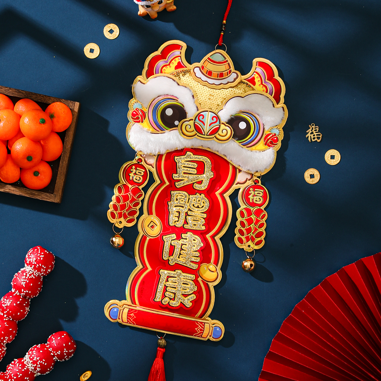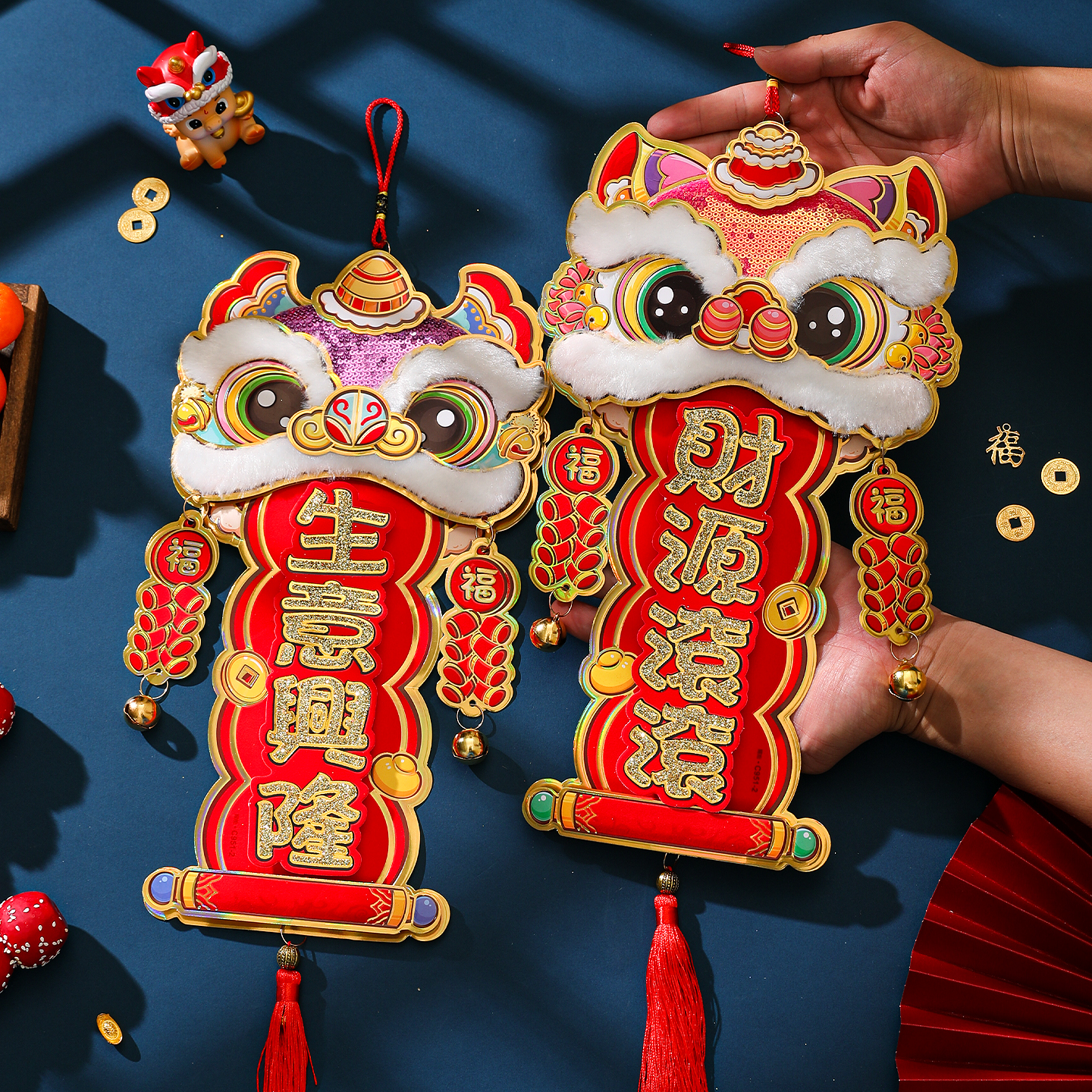 新年醒狮子挂件2026马年春节国潮立体亮片四字挥春小对联挂饰装饰