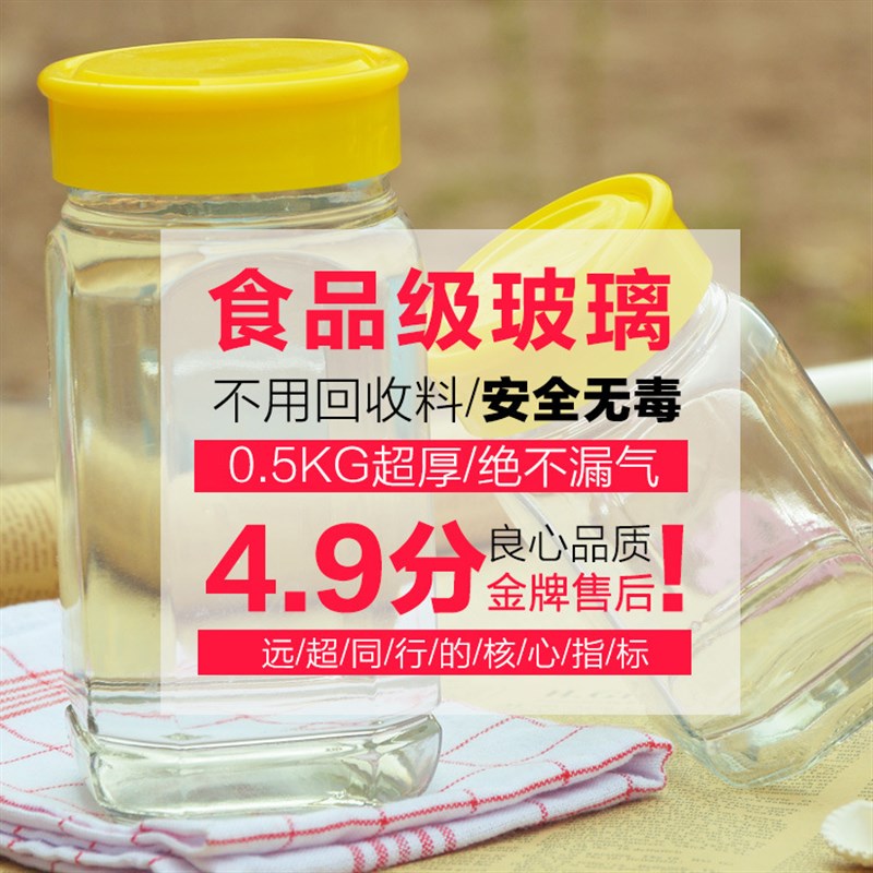 A6L1斤2斤装无铅八角蜂蜜密封玻璃瓶酱菜瓶储物罐果酱瓶带盖子密