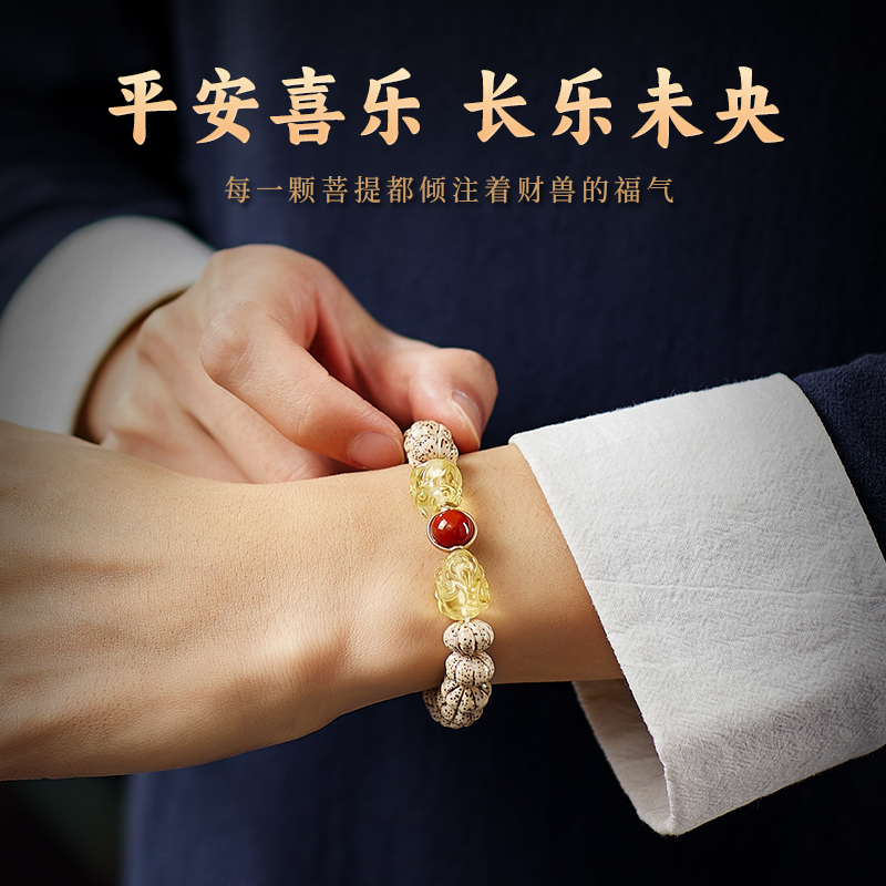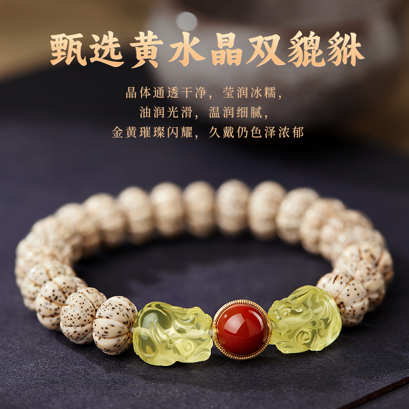 星月菩提手串男女黄水晶双貔貅原籽文玩佛珠南红玛瑙手链情侣款