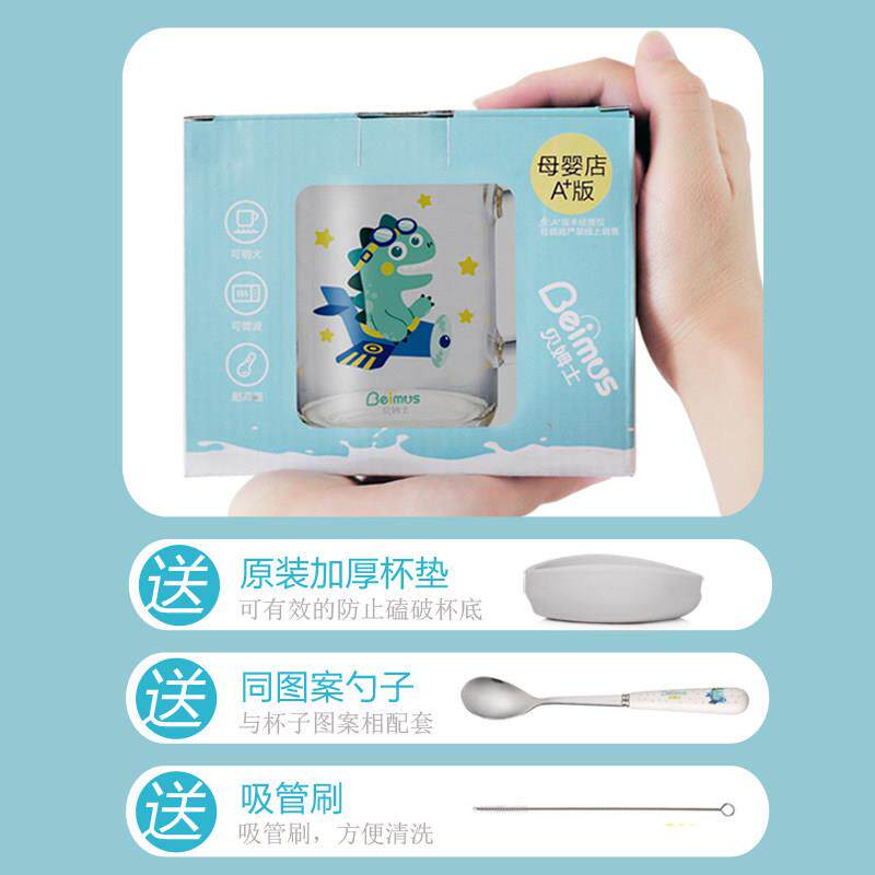 儿童牛奶杯家用吸管杯宝宝喝奶粉带刻度专用玻璃杯子可微波