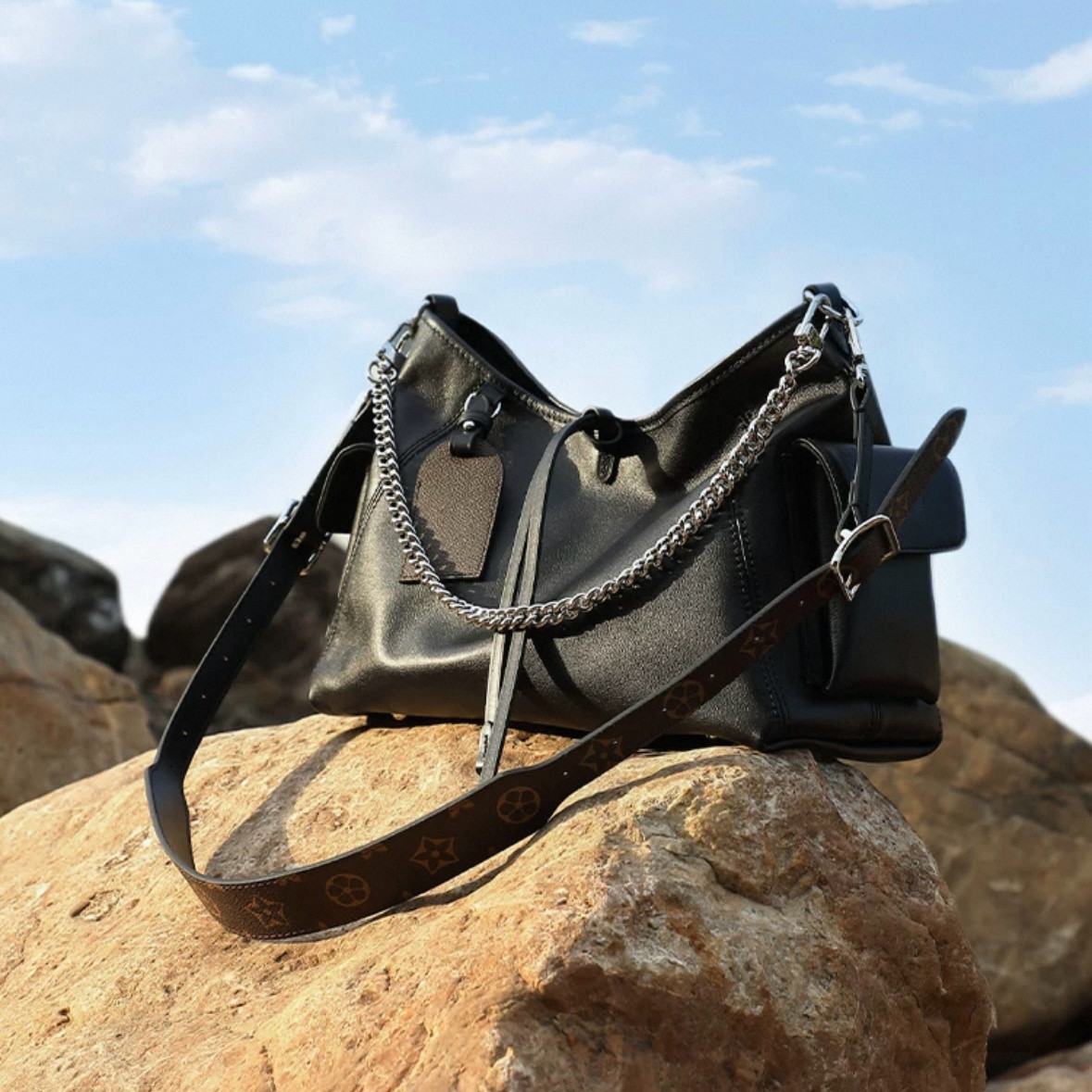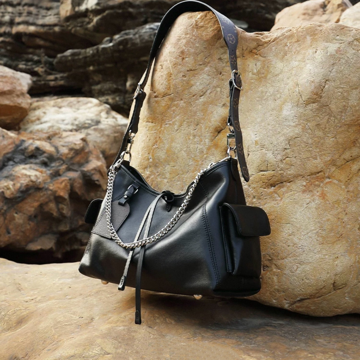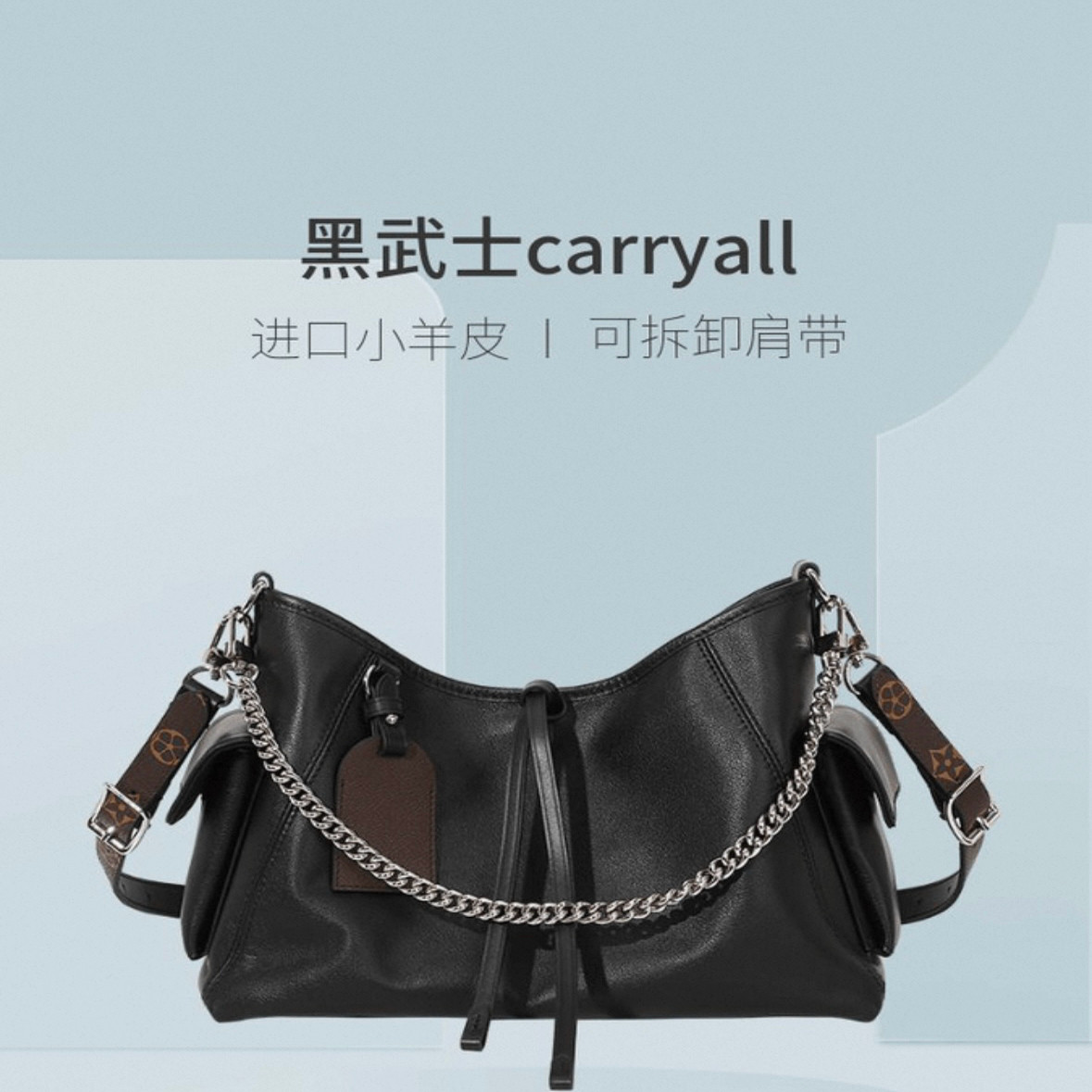 进口意产油蜡山羊皮黑武士大容量托特包通勤单肩斜挎包真皮女包