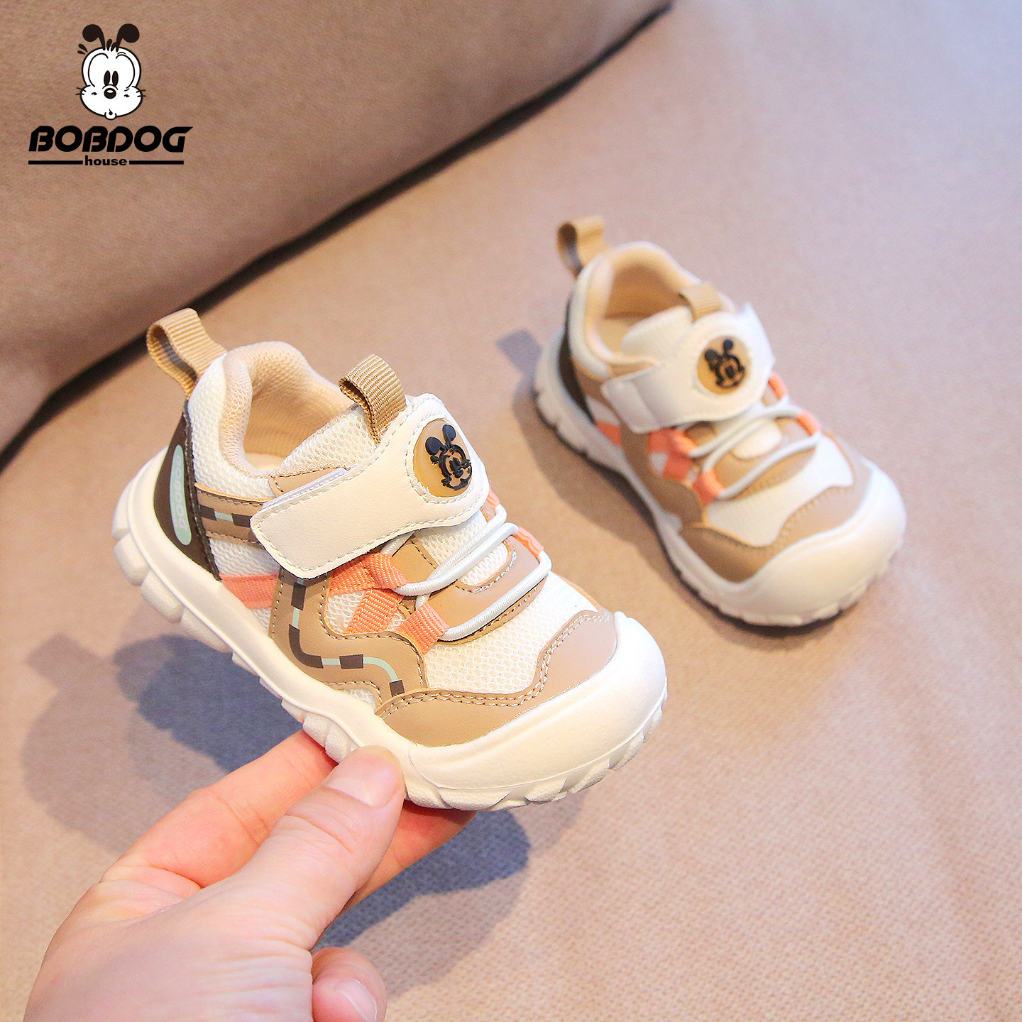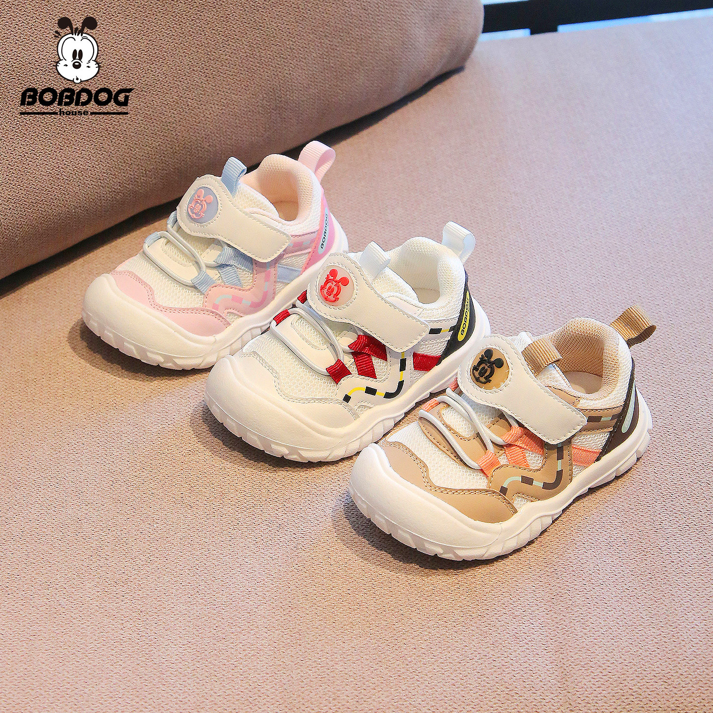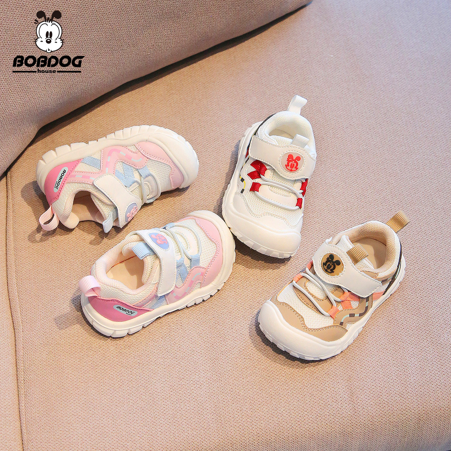 巴布豆男童运动鞋2026春季女童透气网面学步鞋儿童防滑软底休闲鞋