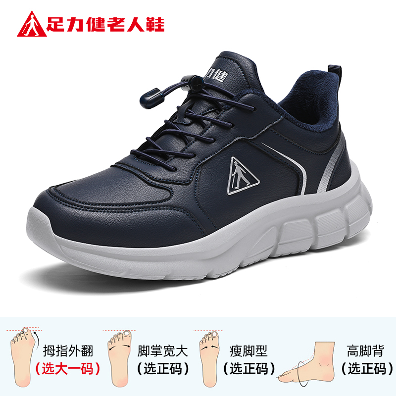 足力健老人鞋官方旗舰店中年爸爸秋冬季加绒保暖棉鞋舒适休闲男鞋