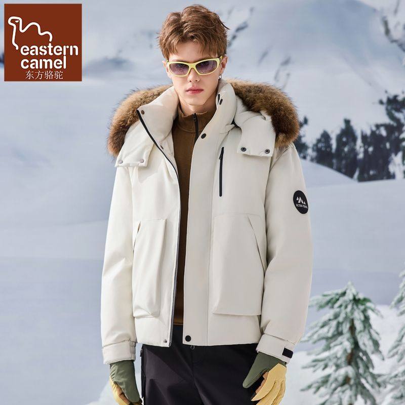 东方骆驼2025冬新羽绒服男女同款貉子毛领时尚情侣款工装外套保暖