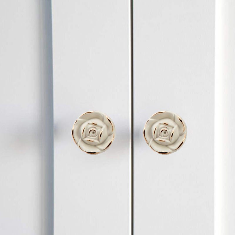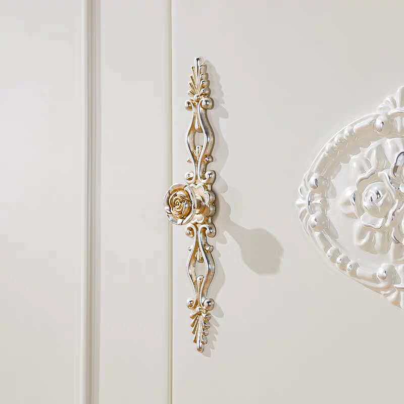 玫瑰花衣柜门白色长拉手