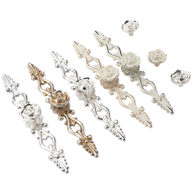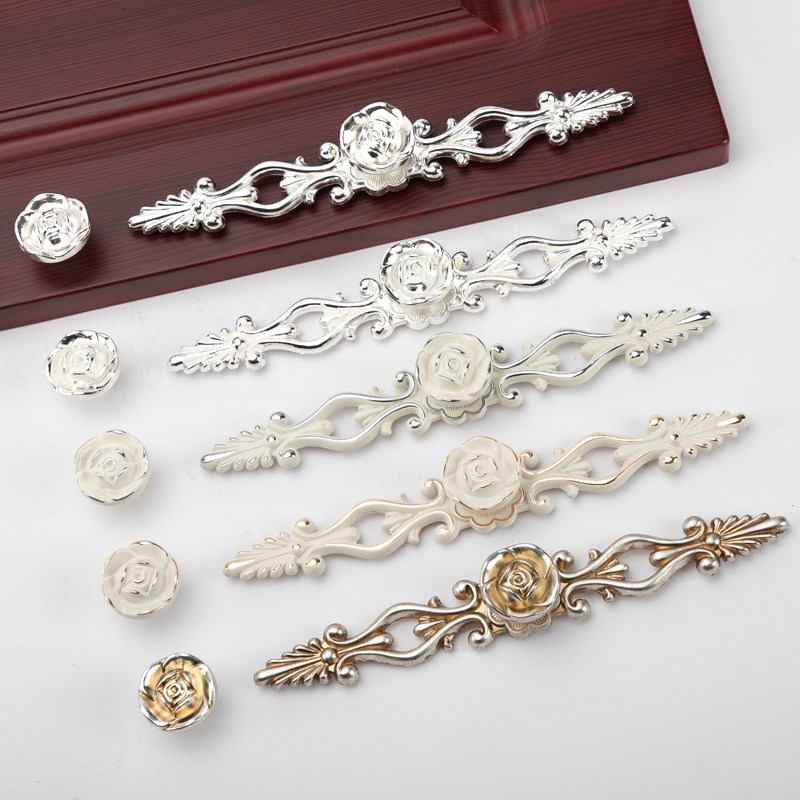 欧式象牙白橱柜拉手现代玫瑰花抽屉衣柜门拉手仿古田园柜子门把手