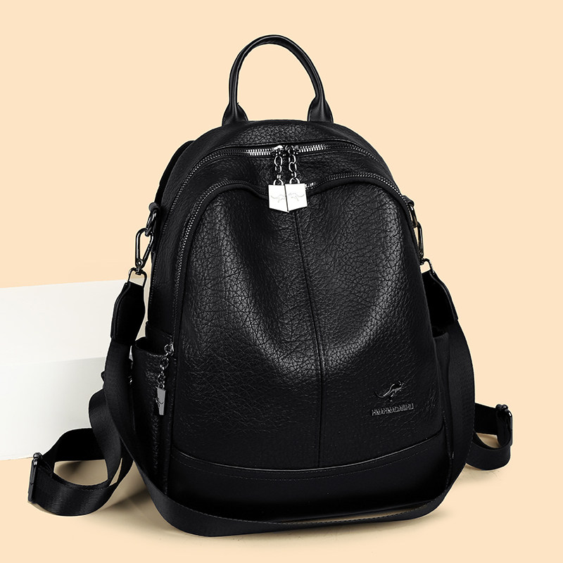软皮双肩包女2025新款韩版时尚