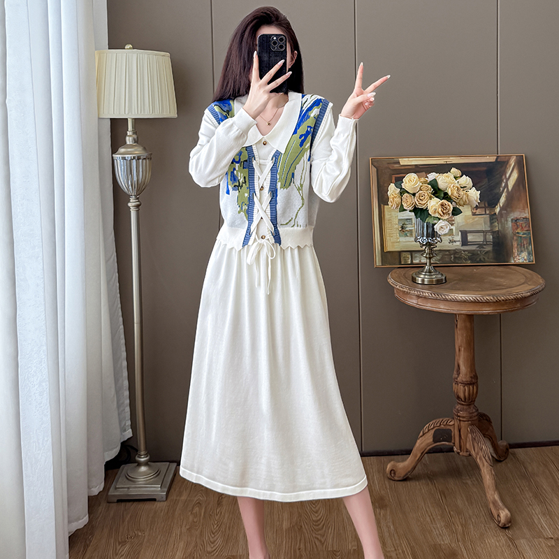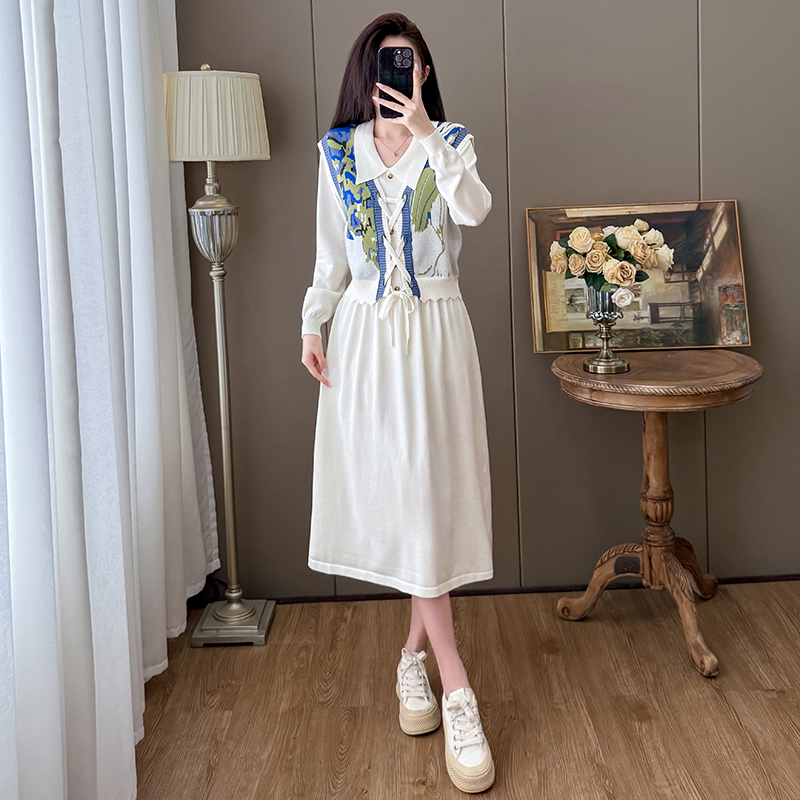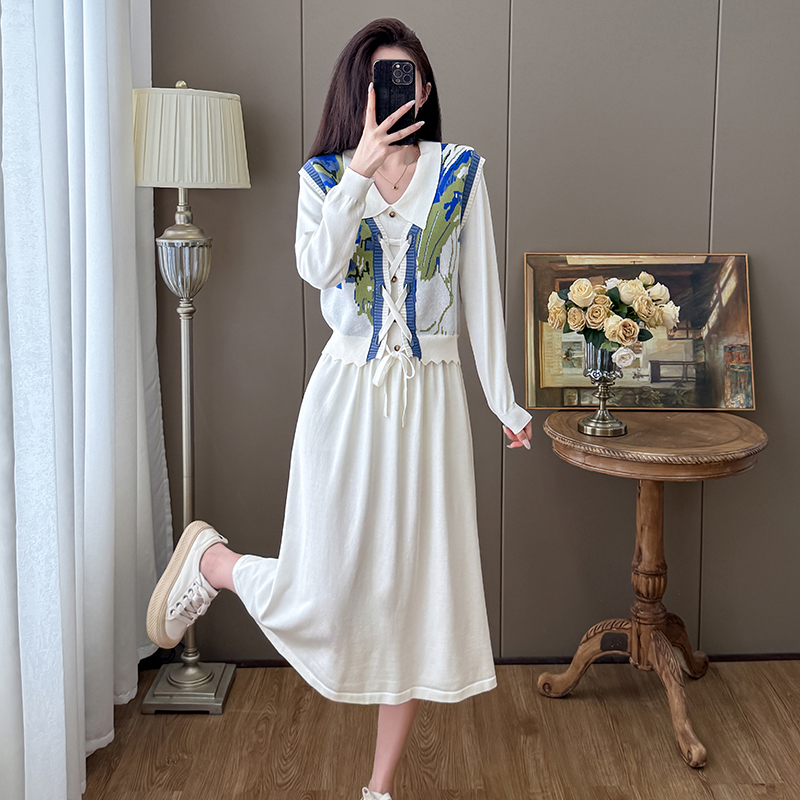 茶歇法式2025新款秋季穿搭针织马甲海边度假背心毛衣搭配套装