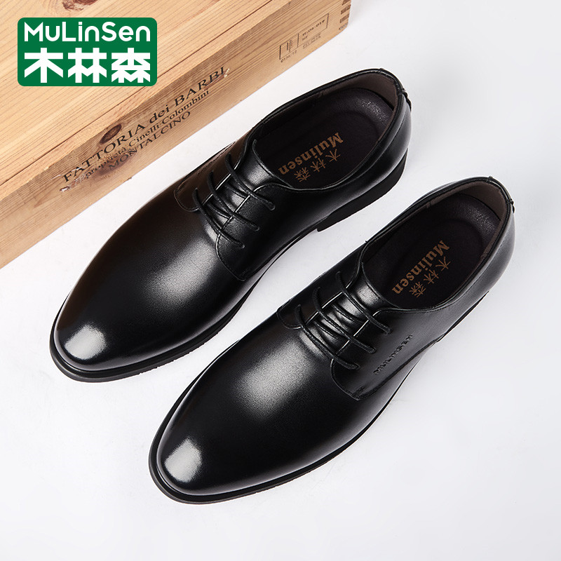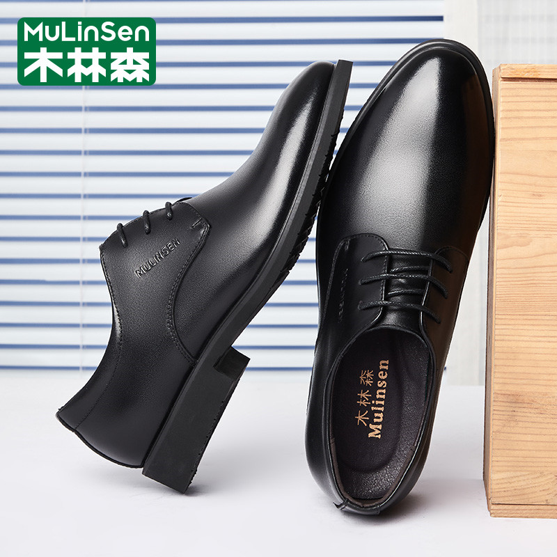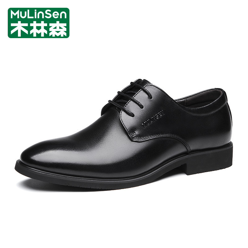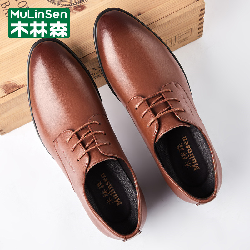 木林森皮鞋男冬季潮流商务真皮休闲尖头正装爸爸厚底结婚新郎潮鞋