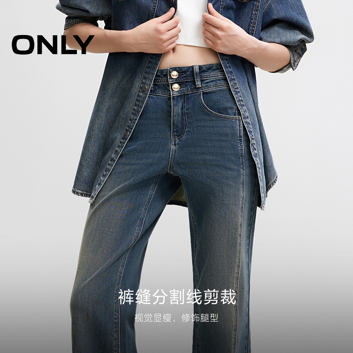 ONLY冬季废土风复古做旧高腰微喇长裤牛仔裤女|124432040