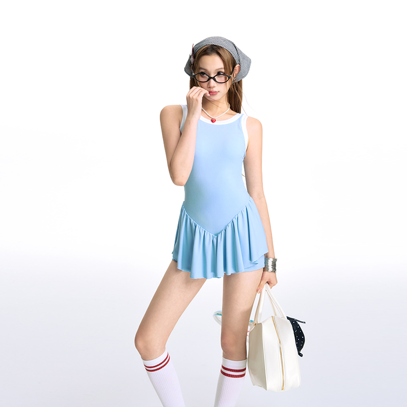 breezeholiday连体裙式泳衣女2025新款保守遮肚显瘦学生度假泳装