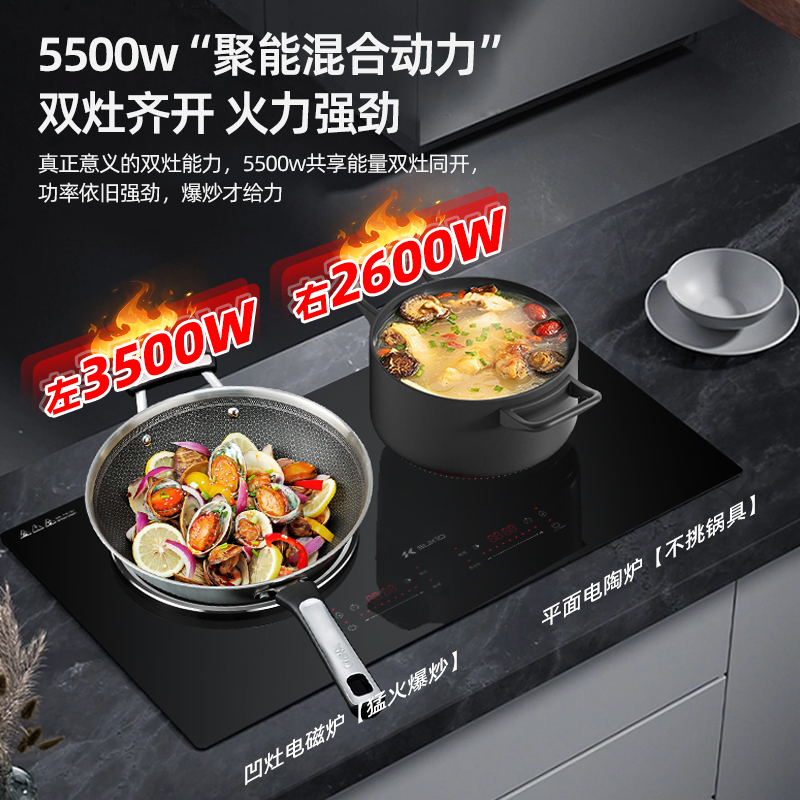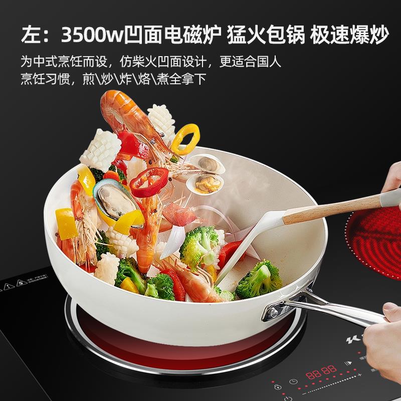 5500W大面板凹面电磁炉双口瓦斯炉嵌入式大功率黑晶炉平凹电灶爆