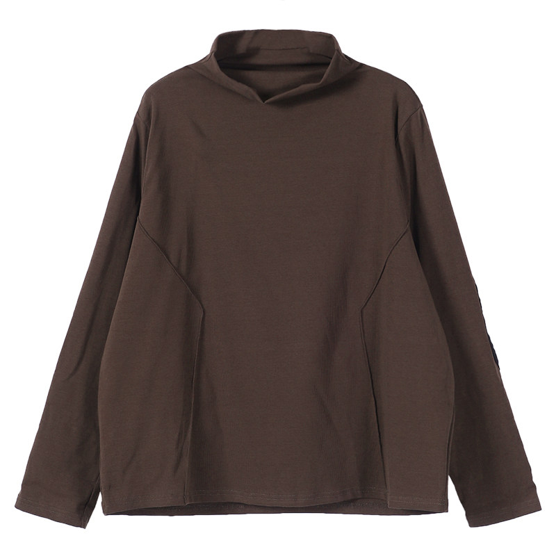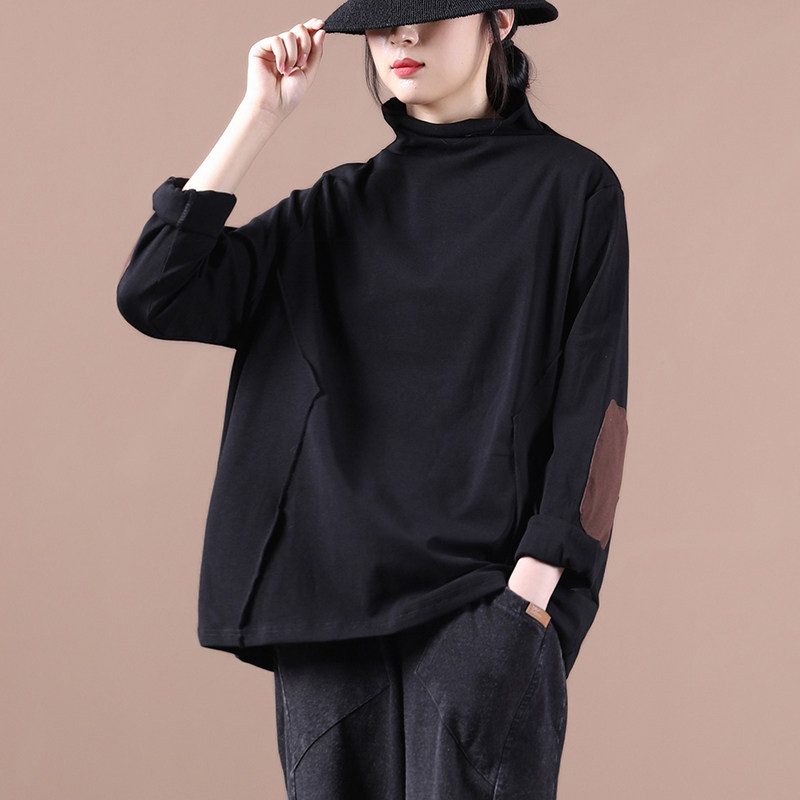 纯棉秋季新款加大码女装洋气宽松半高领打底衫长袖T恤上衣女春秋