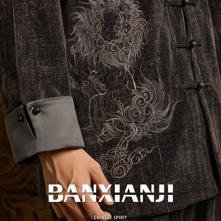 半闲集<天禄守安>狮子刺绣唐装上衣新中式男装中国风盘扣外套