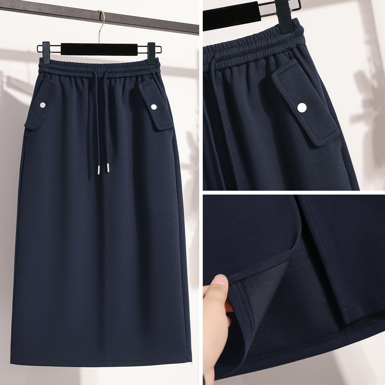 2025秋季简约百搭显瘦弹力半身裙女胖MM遮肉遮跨显瘦宽松型中长裙
