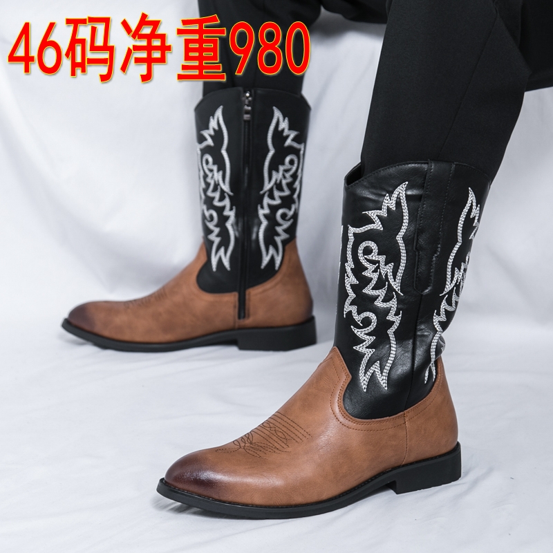 高帮鞋英伦男款秋冬季2025新款高筒靴大码皮鞋布洛克高帮鞋尖头男