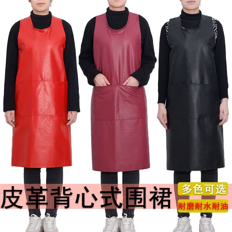 皮革围裙防水防油耐脏家用厨房男女加厚耐磨工作服背心式皮围裙