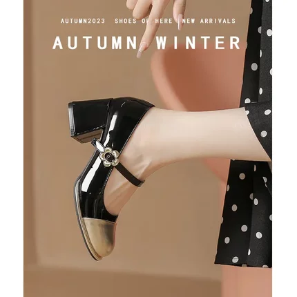 时尚百搭仙女风浅口玛丽珍鞋高跟鞋2024年夏秋季圆头粗跟单鞋中跟