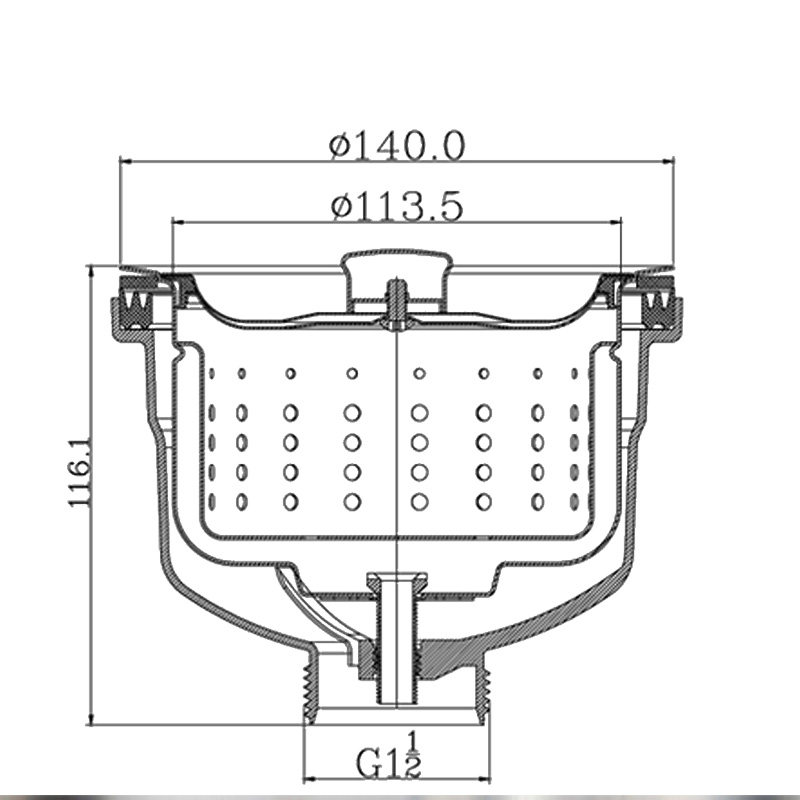 欧派厨房不锈钢单双水槽140mm提篮下水器 洗菜盆14cm去水头落水器