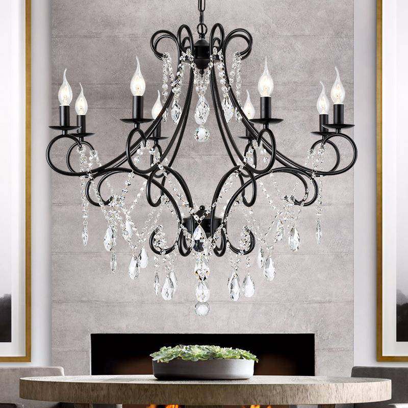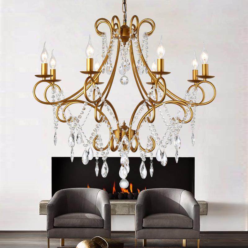 促销美式吊灯客厅灯欧式复古铁艺蜡烛水晶灯饰卧室餐厅灯具