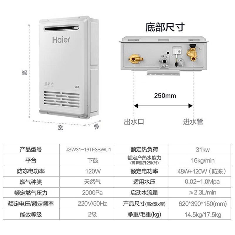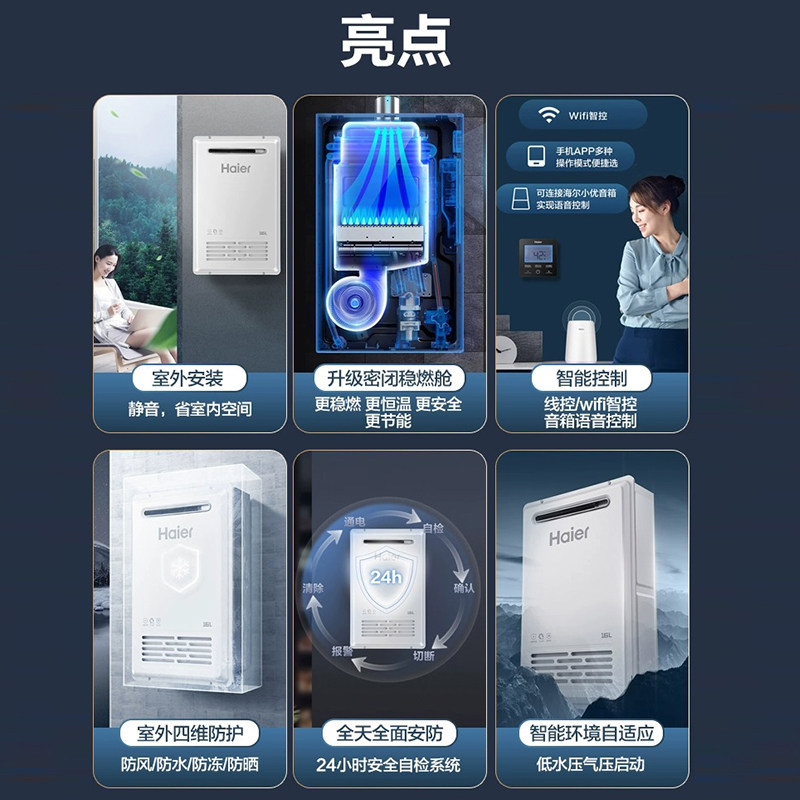 海尔室外16升下置风机燃气热水器