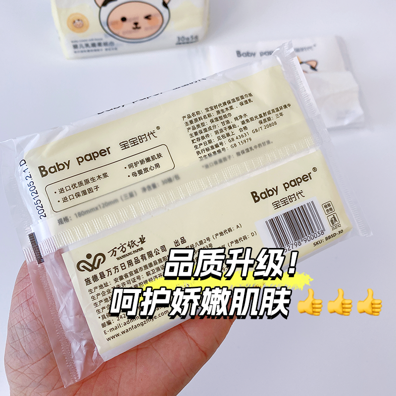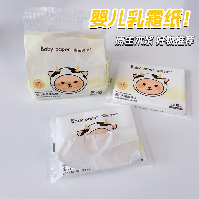 宝宝时代婴儿乳霜柔纸巾3层30抽木浆柔软亲肤抽取式抽纸巾