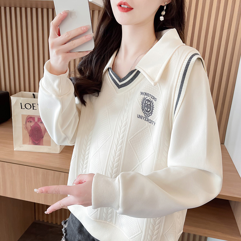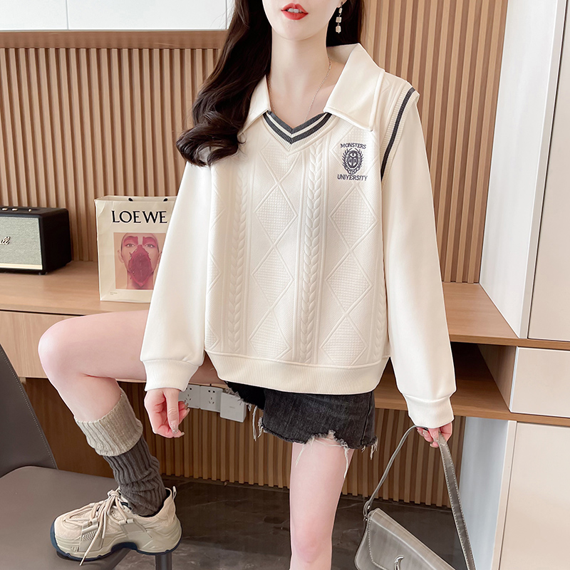 翻领polo衫卫衣女2025新款春秋季韩版宽松薄款撞色假两件上衣外套