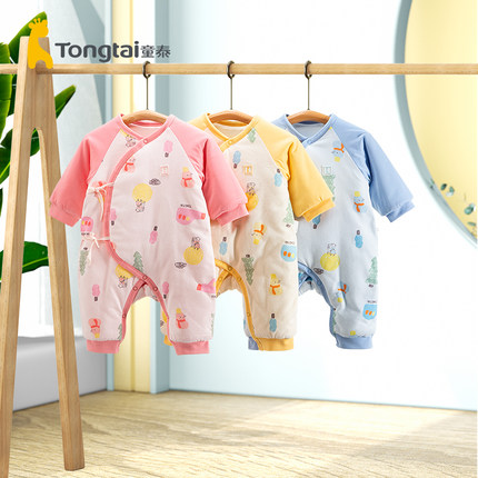 童泰婴儿夹棉连体衣春秋冬季新生儿爬服男女宝宝纯棉哈衣外套中厚