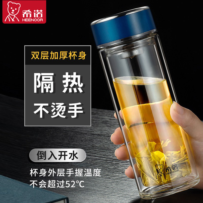 希诺水杯2026新款玻璃杯男双层防烫时尚便携泡茶杯子女家用喝水杯
