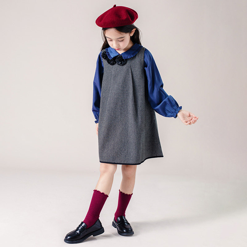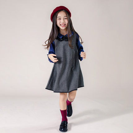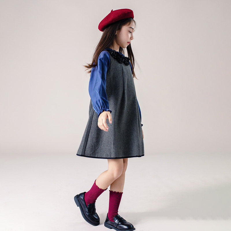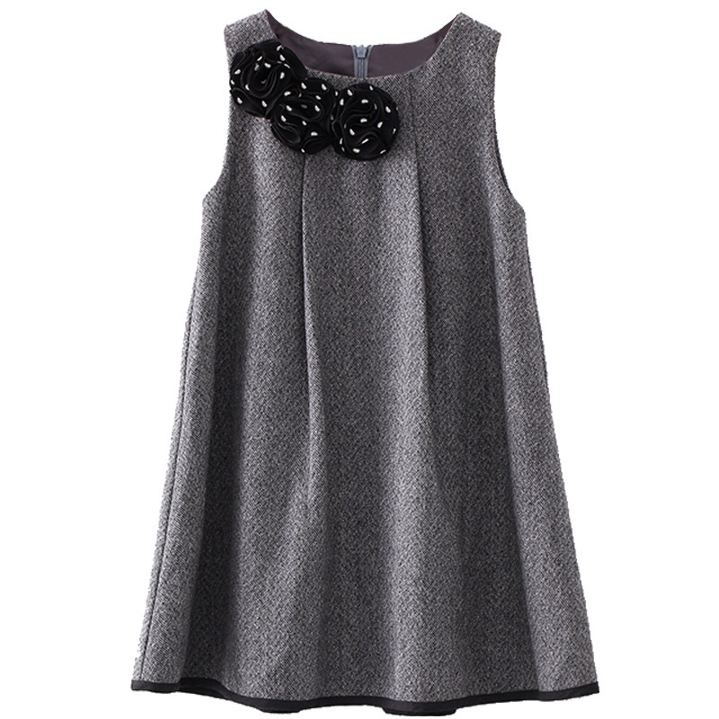 女童羊毛呢子连衣裙2021秋冬新款无袖胸花背心裙洋气儿童公主童裙