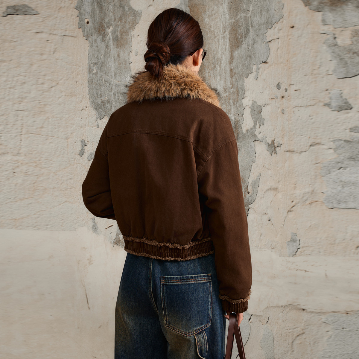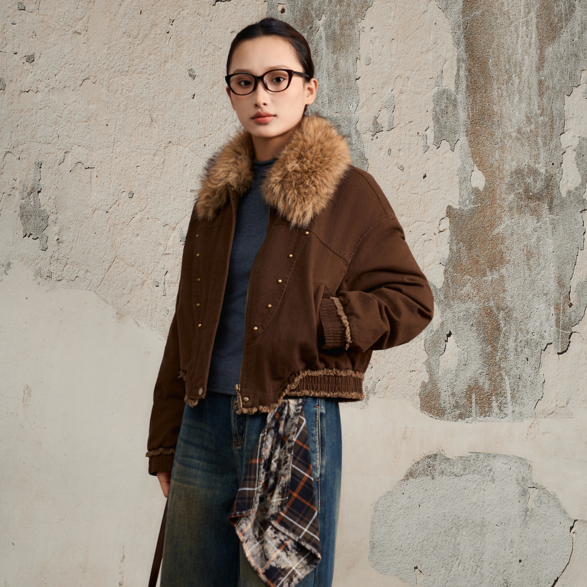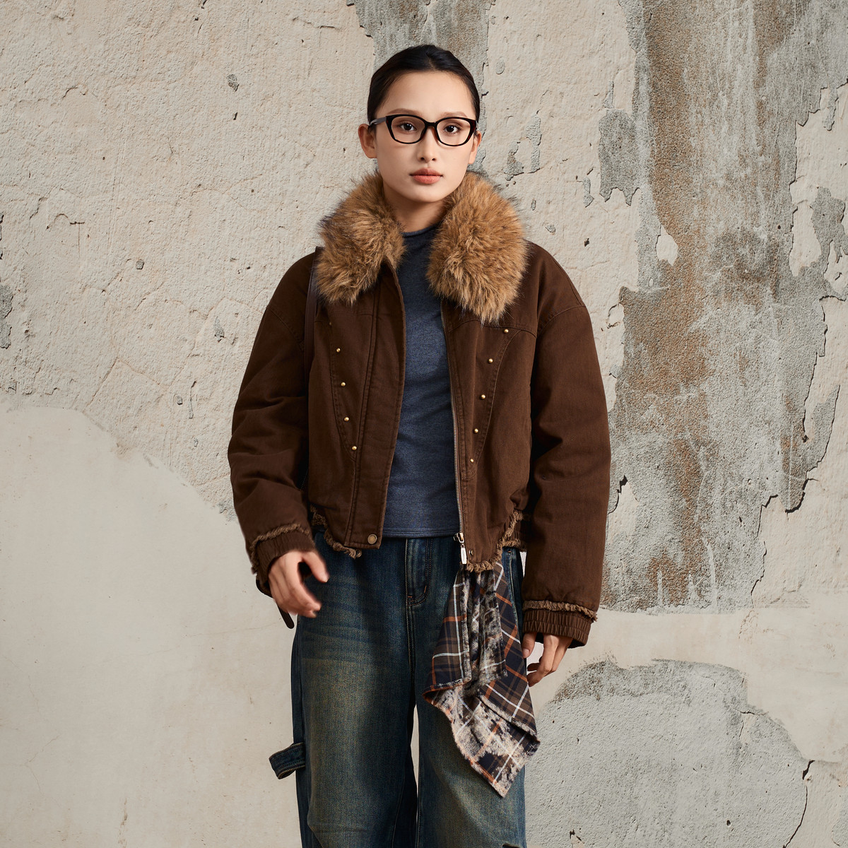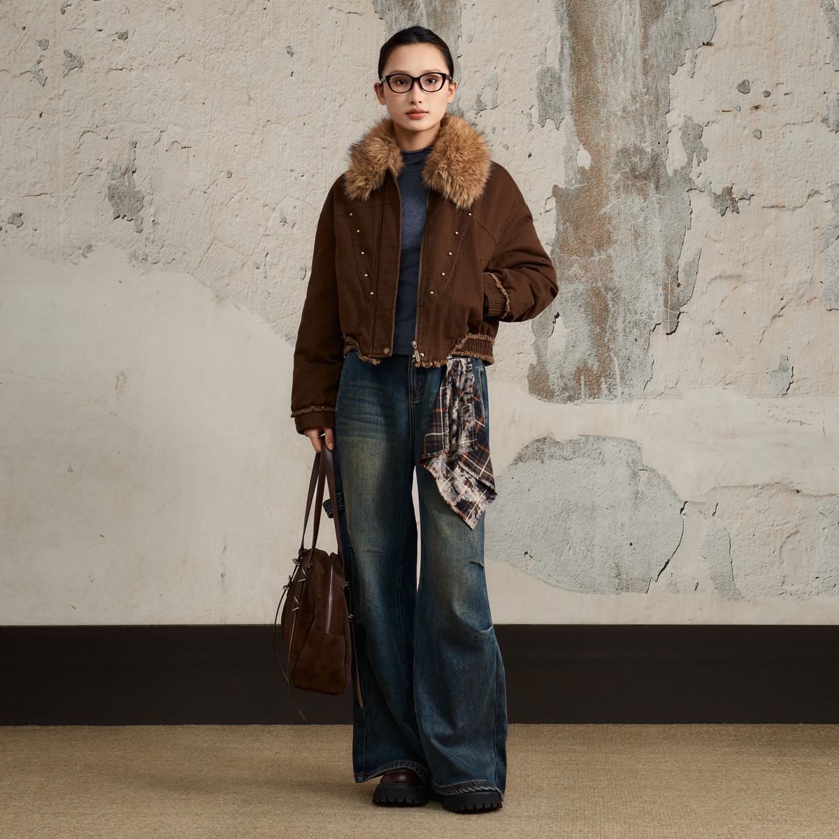 西町村屋潮流外套女装2025冬季新款洗水做旧毛边羽绒服XAAD10700