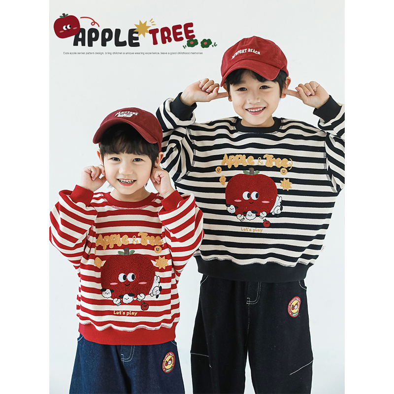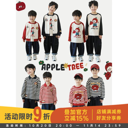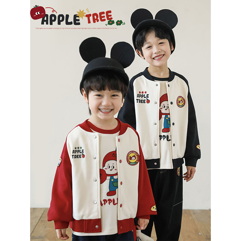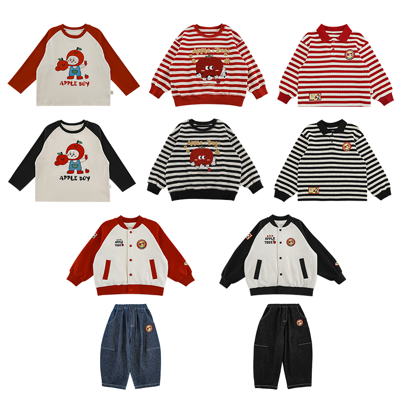 幼悠 男童2025新款撞色t恤棒球服外套直筒宽松牛仔裤苹果系列套装