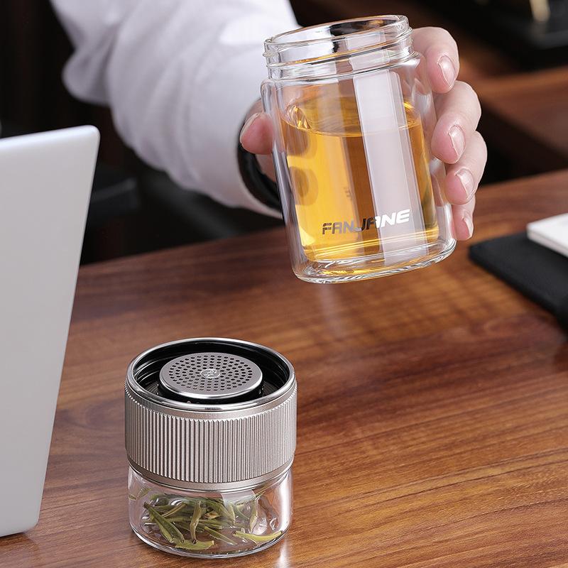 繁简茶水分离杯玻璃杯耐热泡茶杯透明杯男女士便携双层送礼水杯子