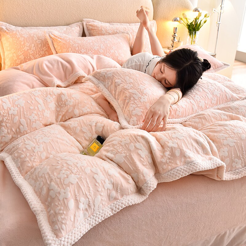 冬季牛奶绒四件套加厚保暖法莱绒被套三件套双面珊瑚绒法兰绒床笠
