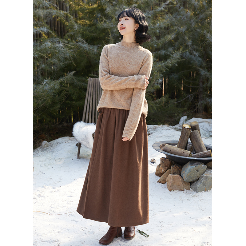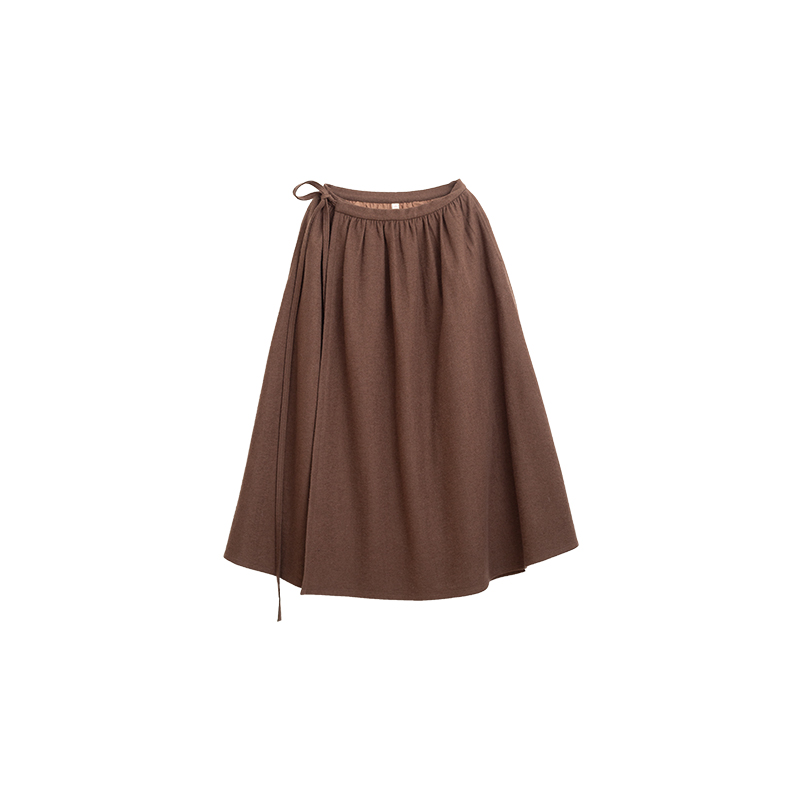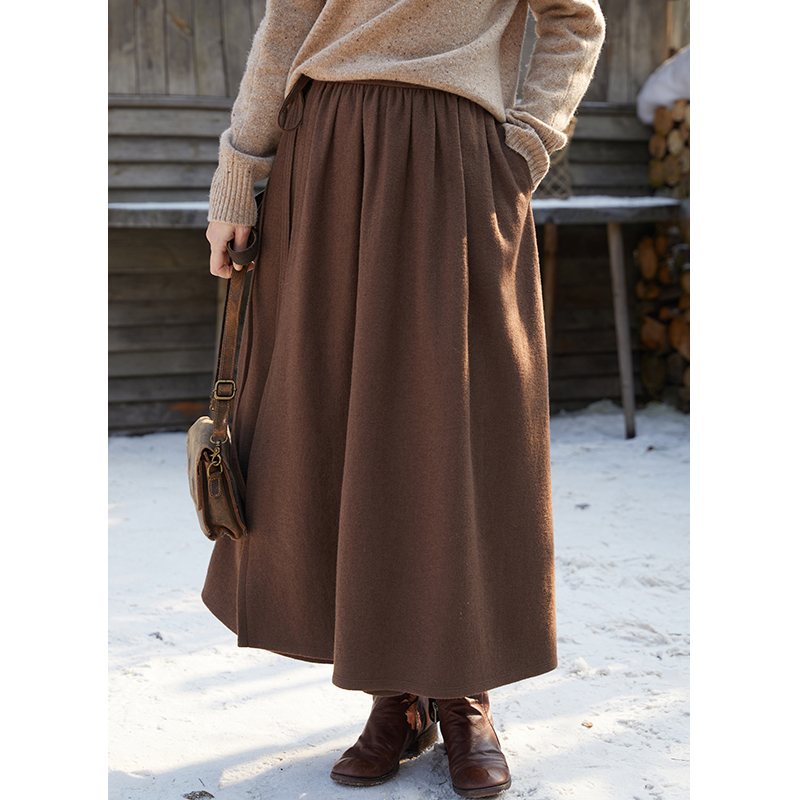 忘城Y592座/现在就出发/冬季380克轻薄羊毛呢棕色一片式半身裙女