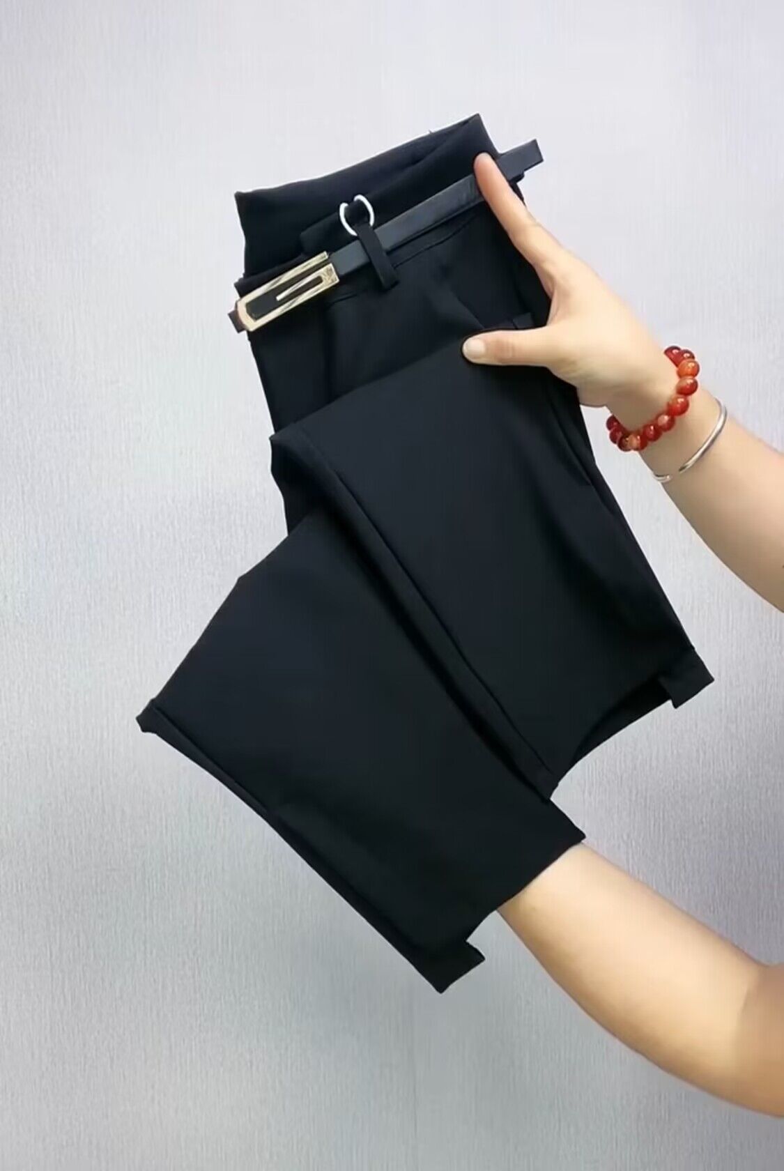 欧洲站2025年春秋新款不规则侧开叉西服裤韩版高腰显瘦女八分裤潮