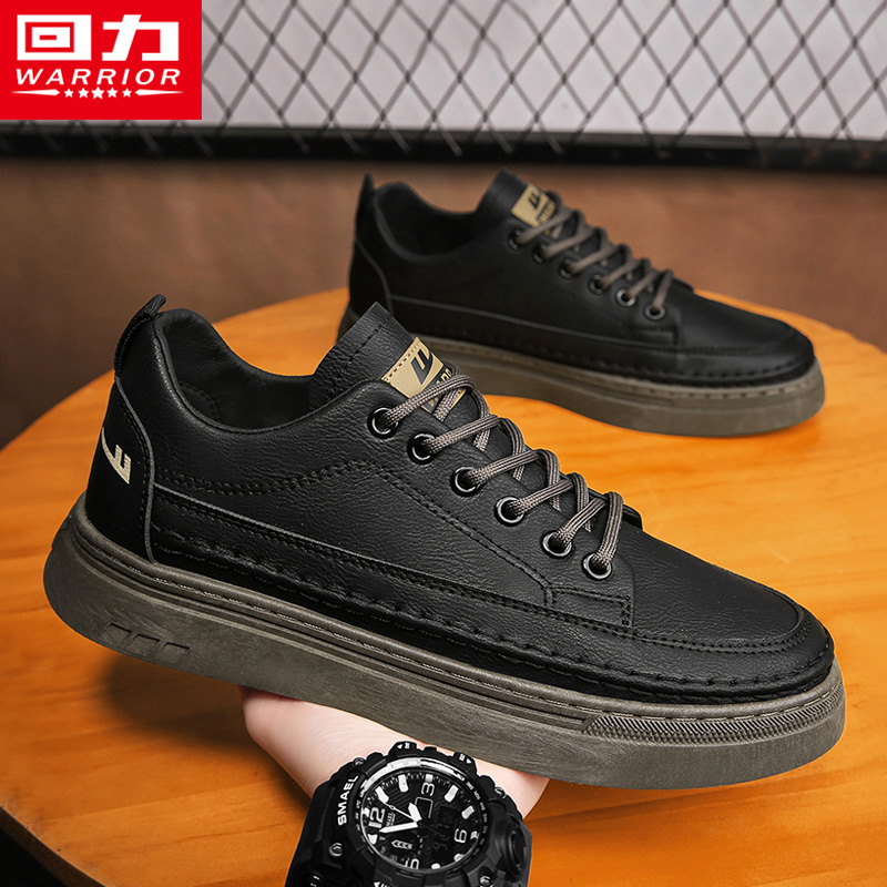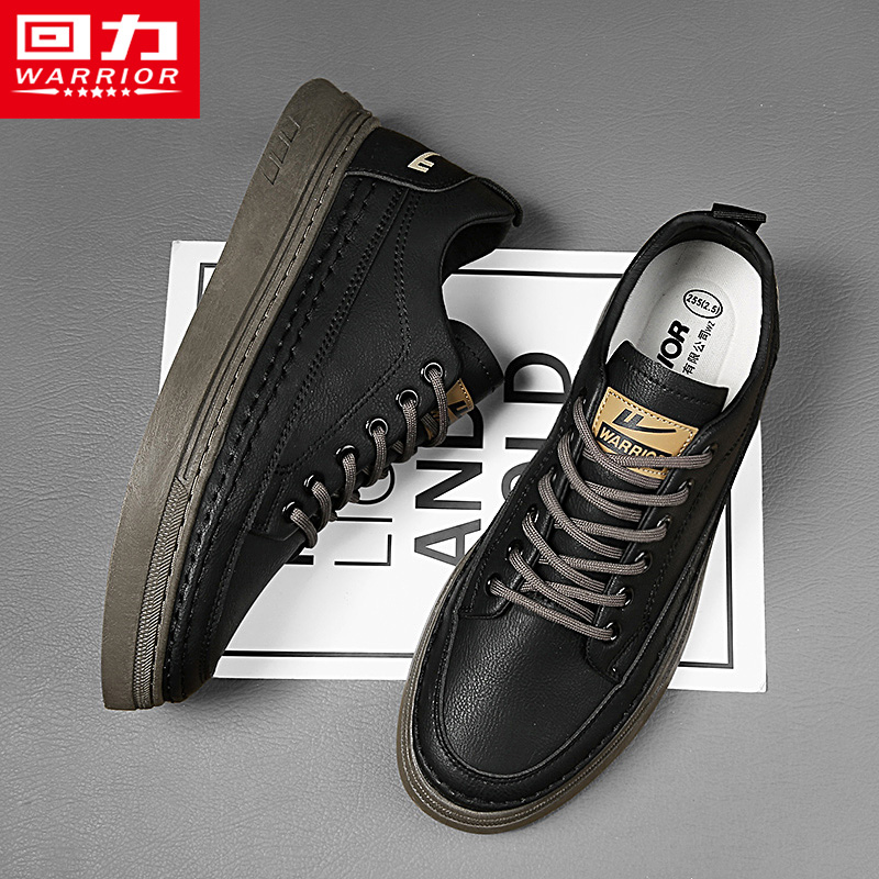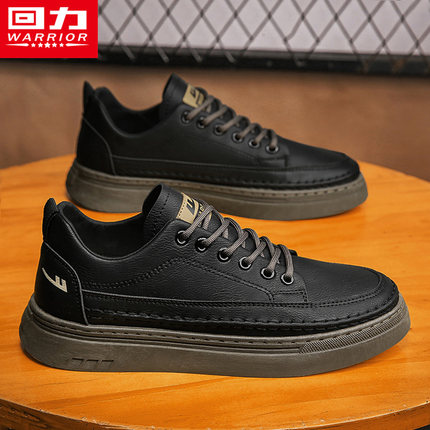 回力冬季男鞋上班防滑防油厨房工作板鞋防水运动皮鞋黑色劳保潮鞋