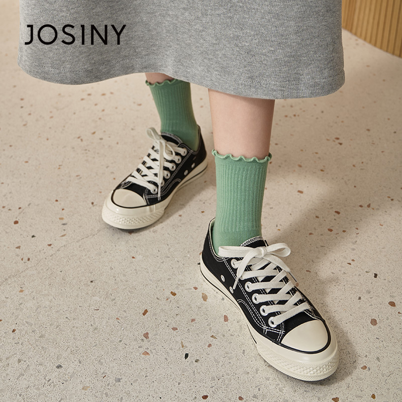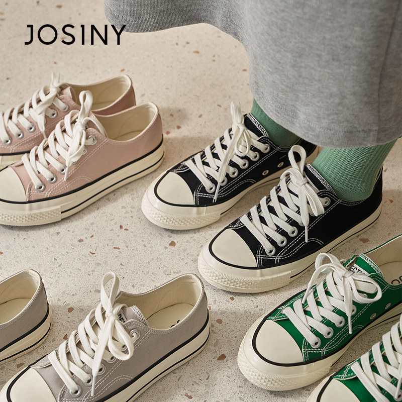 卓诗尼春秋季新款休闲运动女鞋圆头平跟系带低帮韩版百搭帆布鞋潮