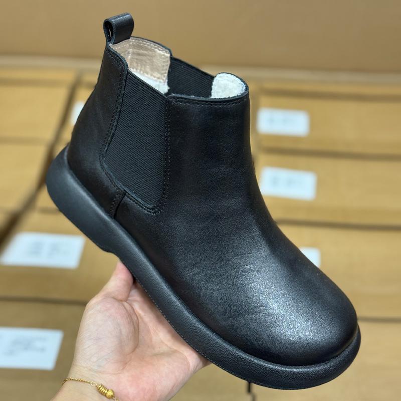 真皮加绒黑色短靴子女2024新款保暖棉鞋冬季鞋子复古休闲烟筒靴