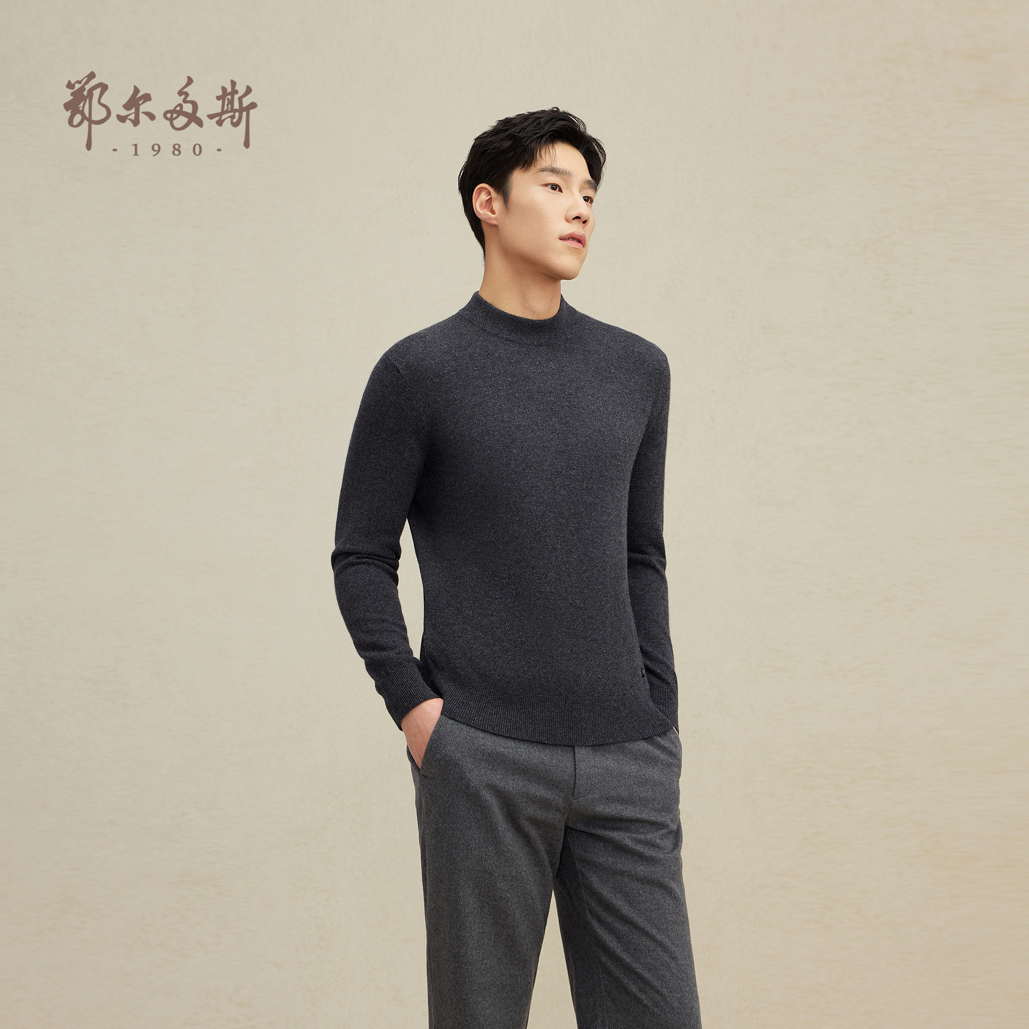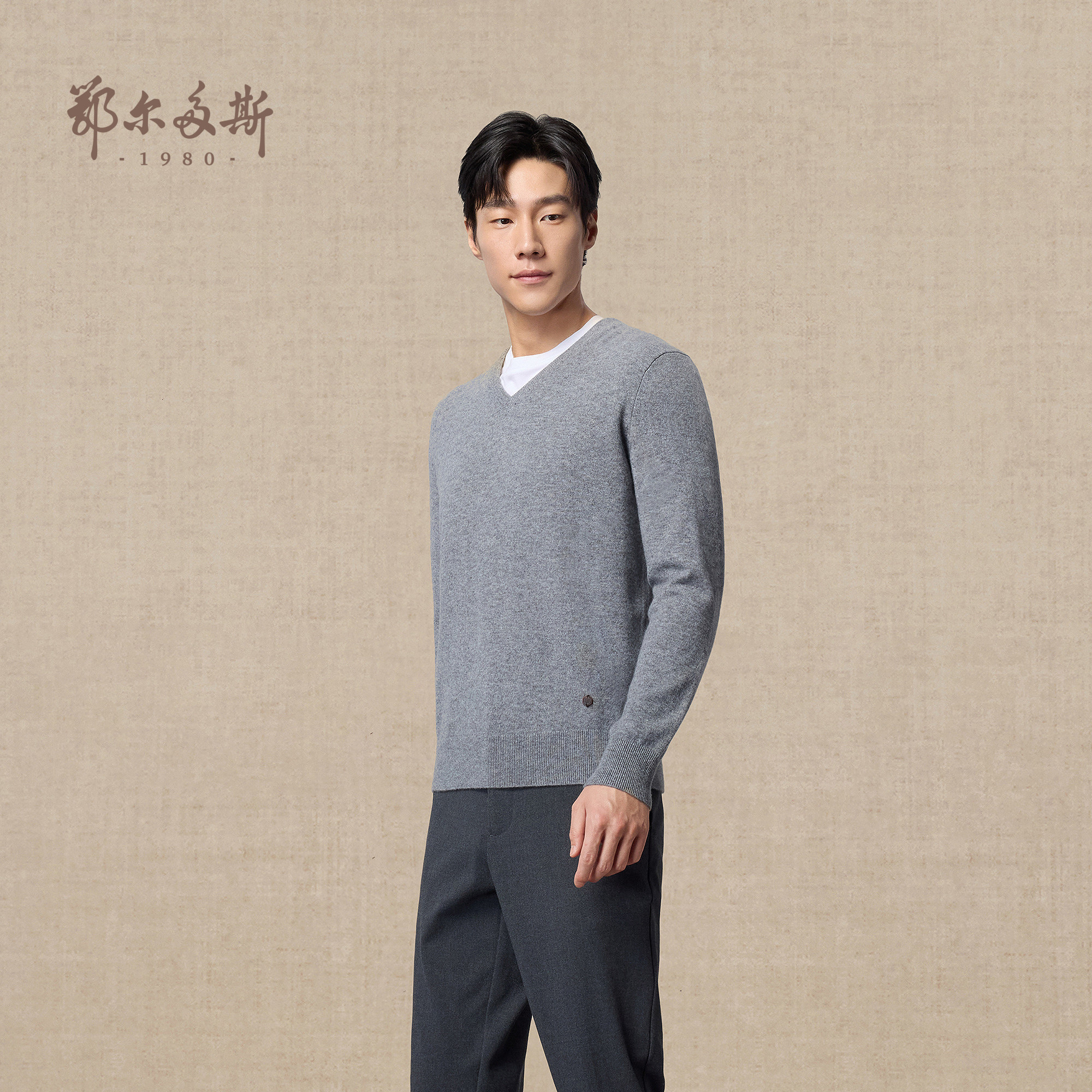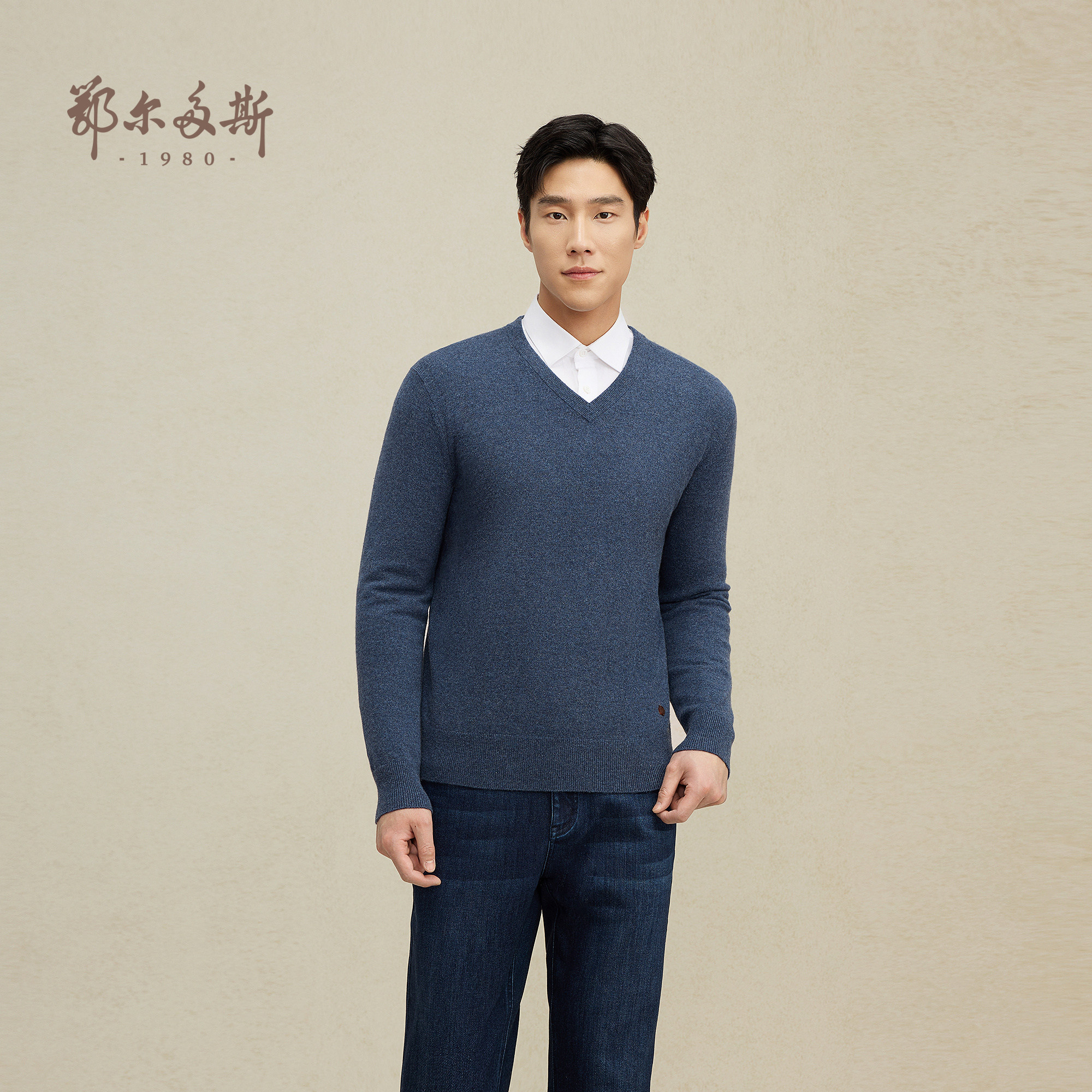 鄂尔多斯1980 纯羊绒半高领/V领套衫男秋冬款商务休闲百搭针织衫