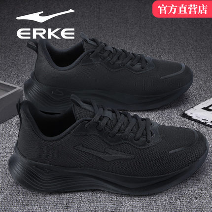 鸿星尔克男鞋秋冬季2026新款运动鞋全黑色网面轻便软底休闲跑步鞋