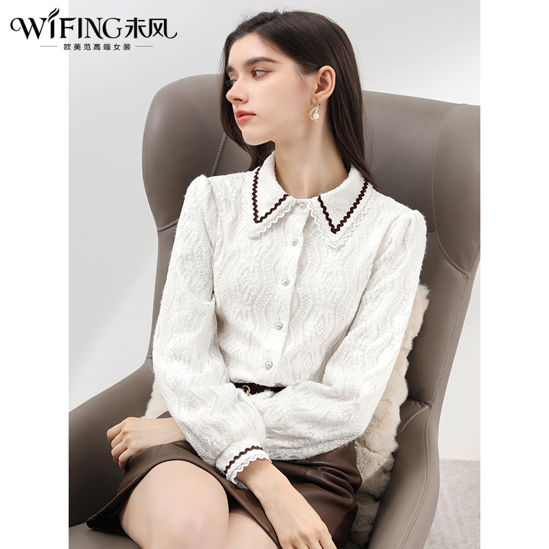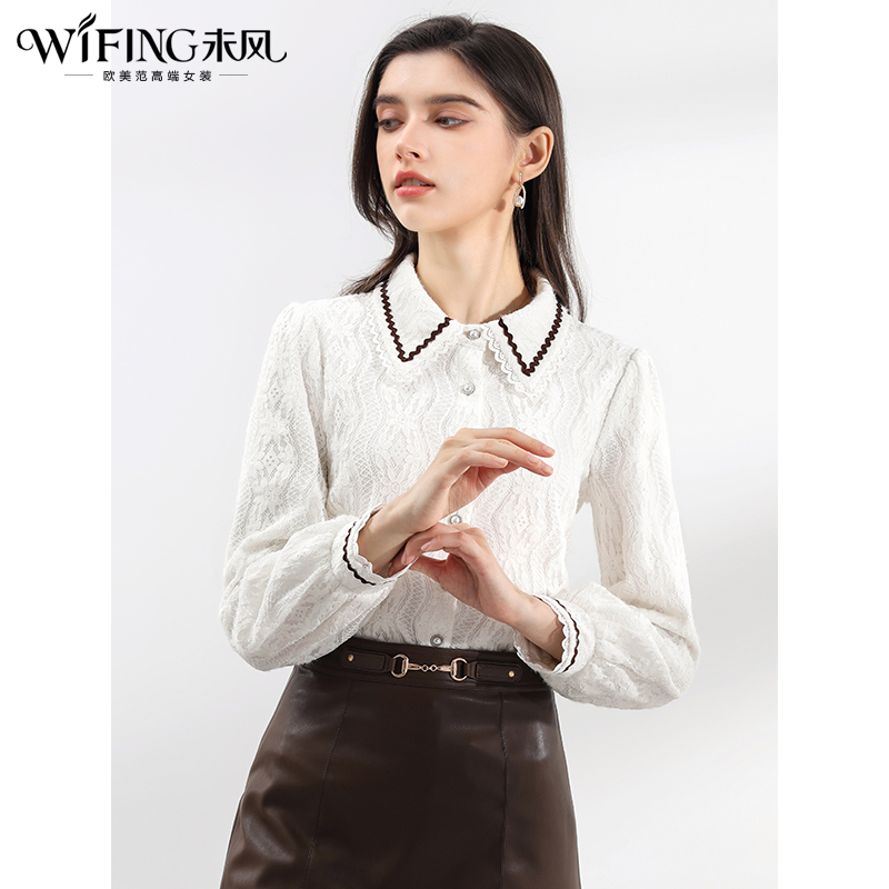 未风白色蕾丝衫女秋冬2025年冬季新款加绒保暖打底内搭衬衫领上衣