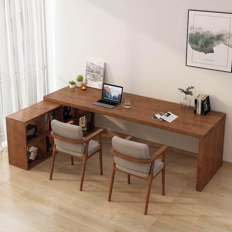 复古简约家用书房靠墙一体化l型书架书桌办公室简易斗柜转角书桌