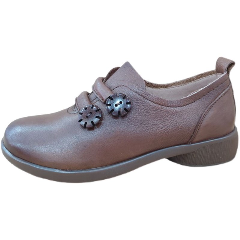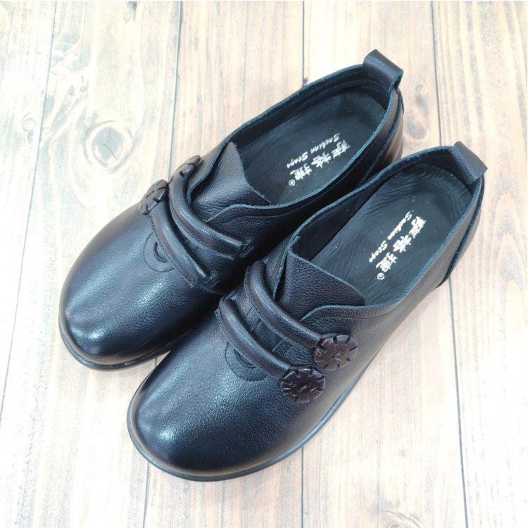 萨格捷软底一脚蹬免系带松紧带深口防滑牛筋底女士复古牛皮单鞋