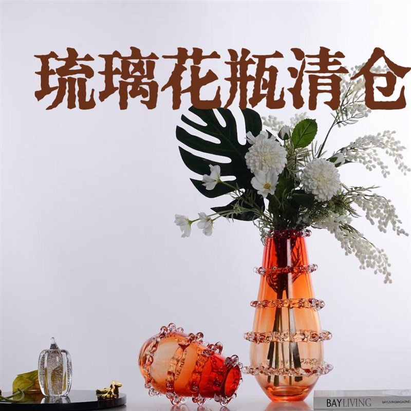 清仓捡漏尾货处理琉璃手工玻璃花瓶干花鲜花台面落地现代复古插花