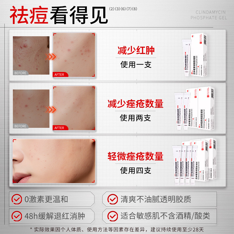 达林克林霉素磷酸酯凝胶去红复方寻常痤疮男士痘痘祛痘药膏软膏