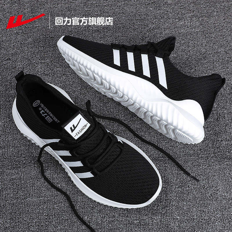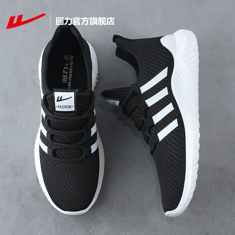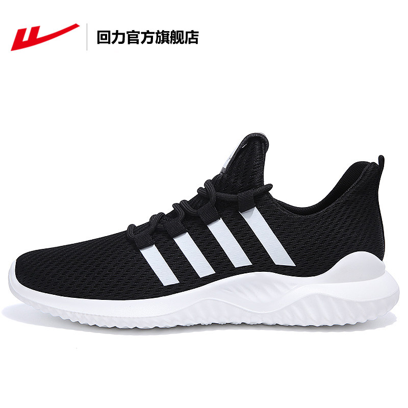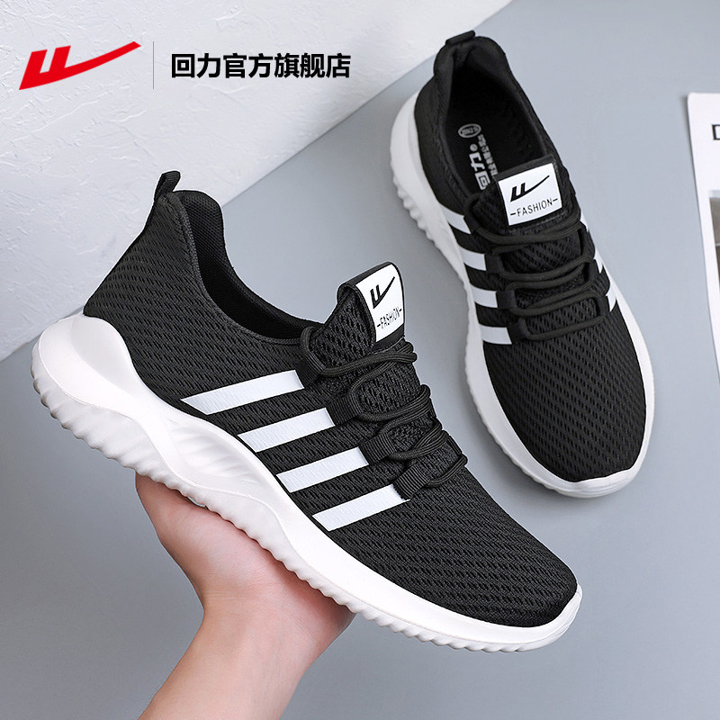 回力官方旗舰店男鞋春秋透气休闲跑步鞋新款黑色网面男士运动鞋子