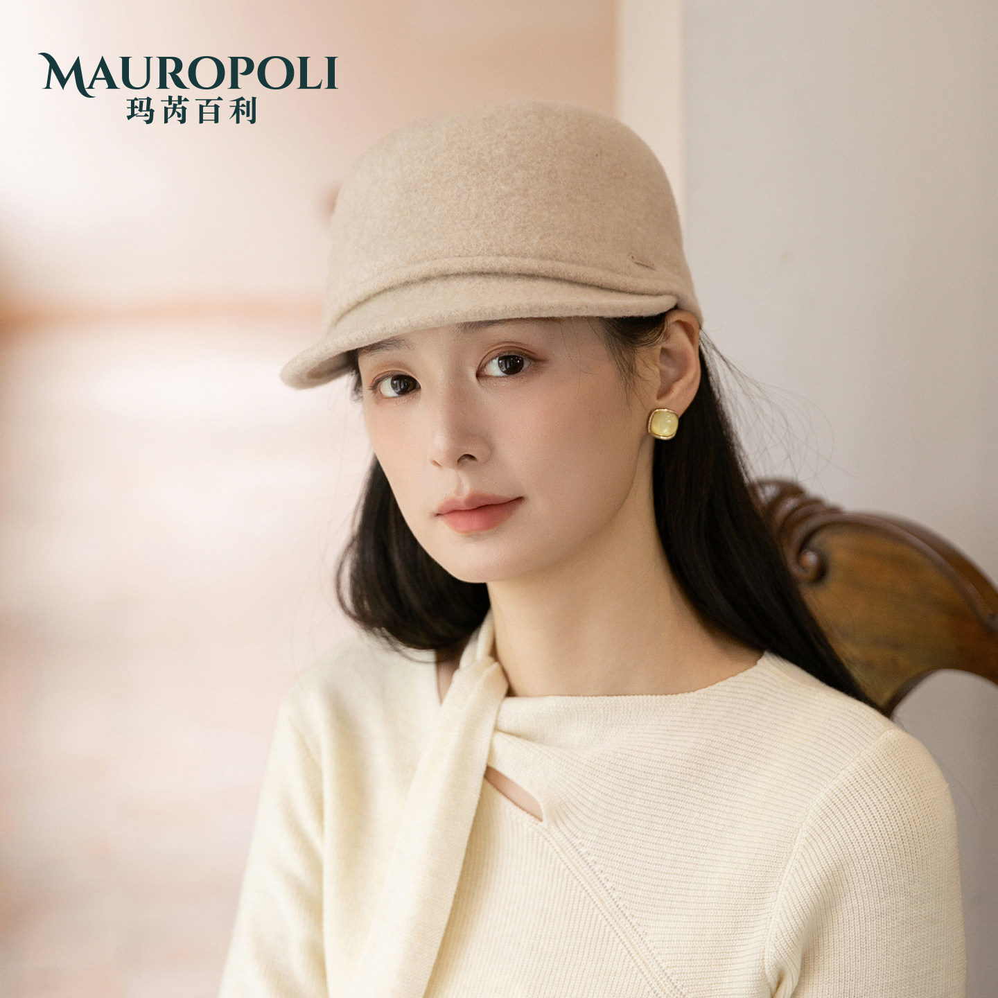 白色羊毛报童帽女气质英伦马术帽女复古保暖秋冬2025新款鸭舌帽女